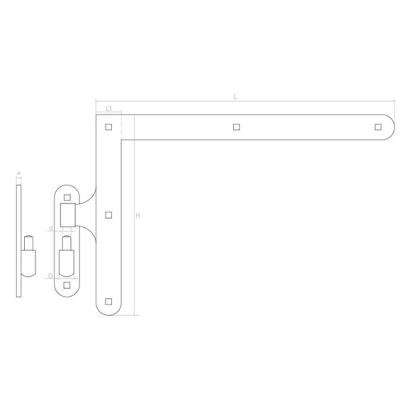 Esteticky dokončené ramená s ozdobnými zakončeniami dodávajú závesu reprezentačný vzhľad, ideálny pre vjazdy brány, záhradné bránky a dvere v rustikálnom štýle. Masívna konštrukcia z ocele s hrúbkou plechu 5 mm zabezpečuje vysokú nosnosť — závesy sa neohýbajú ani pod váhou ťažkých krídel.