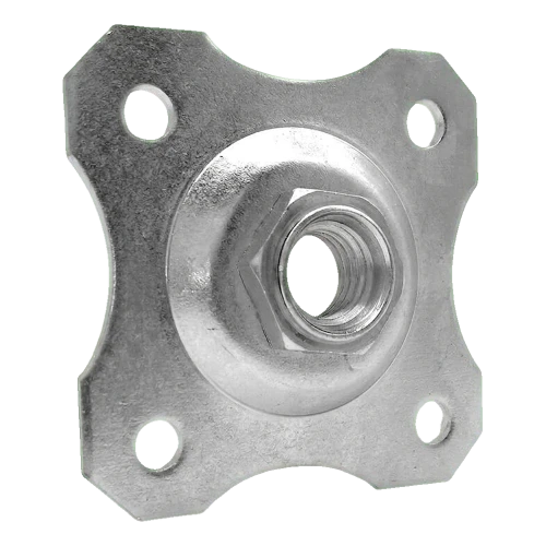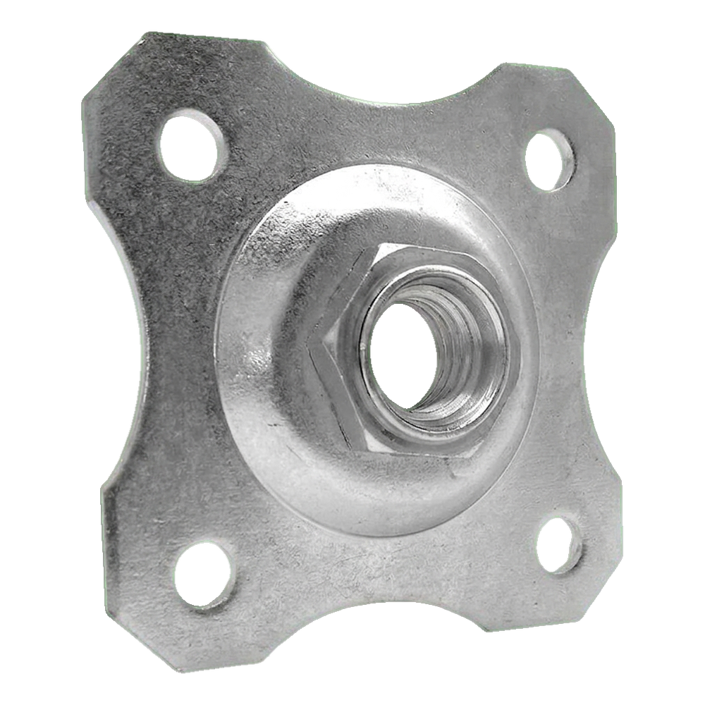 Ozdobný štítok 100 × 100 mm je estetický montážny prvok určený na použitie s regulovateľným závesom so skrutkou M20. Štyri montážne otvory zabezpečujú spoľahlivé a trvalé priskrutkovanie k stĺpu brány alebo vrátok, a zinková povlak zaručuje dlhoročnú odolnosť voči korózii a premenlivým poveternostným podmienkam.
