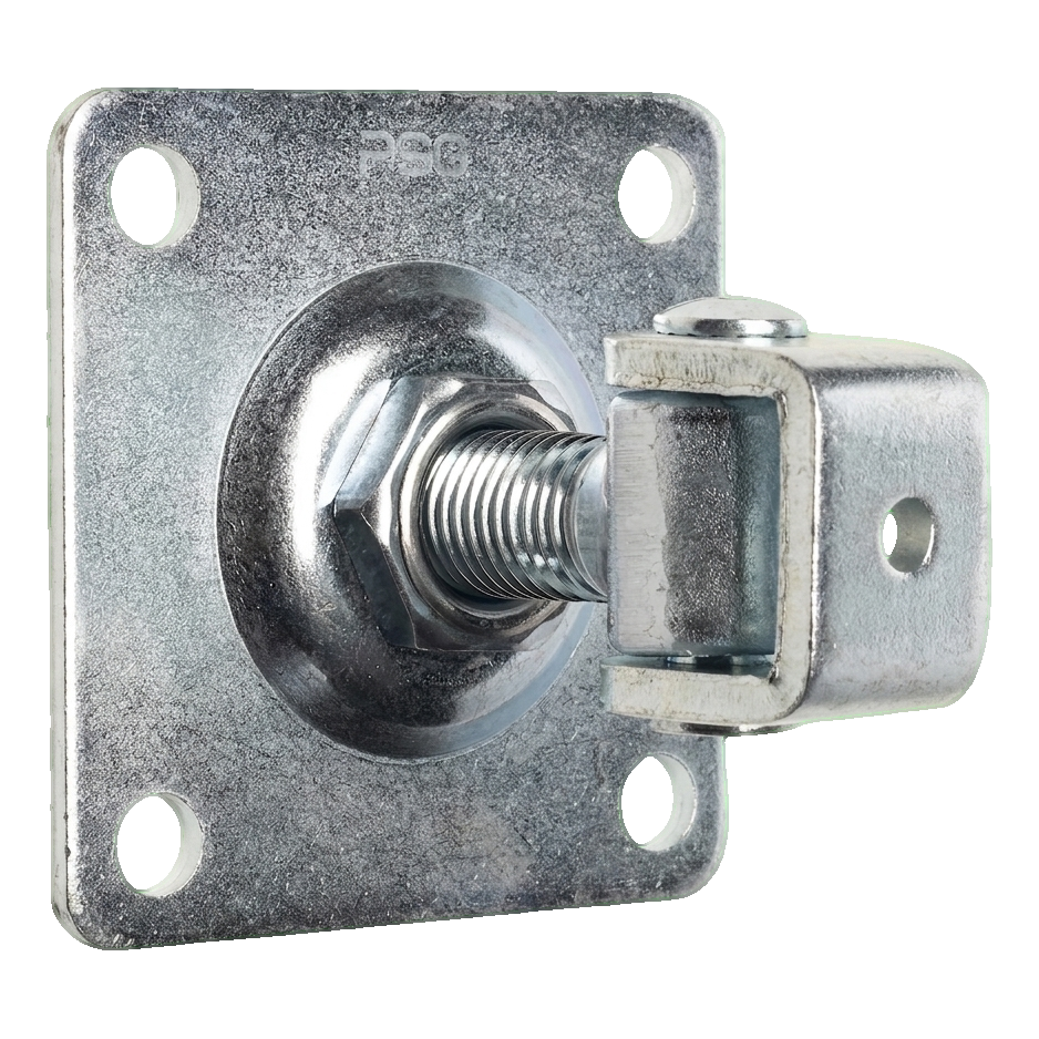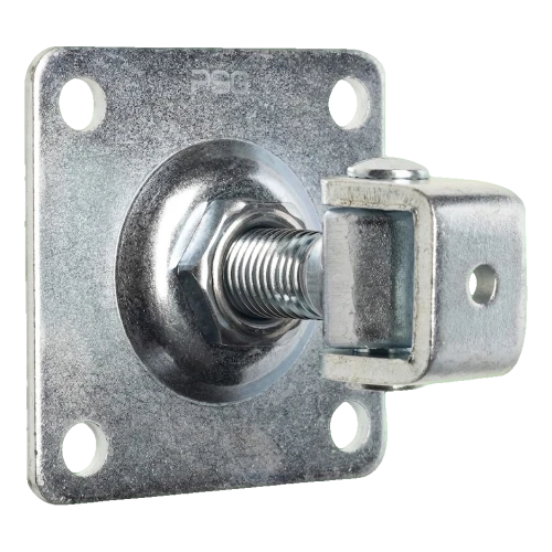 Regulovateľný záves so štítom M20 je odolný prvok brankovej kovania určený na montáž krídle brán na oploteniach stĺpikoch. Štít so štyrmi montážnymi otvormi umožňuje rýchle a spoľahlivé priskrutkovanie k stĺpiku, a závit M20 s regulovateľným uchom umožňuje presné nastavenie krídle brány už po ukončení montáže — bez potreby demontáže celku.