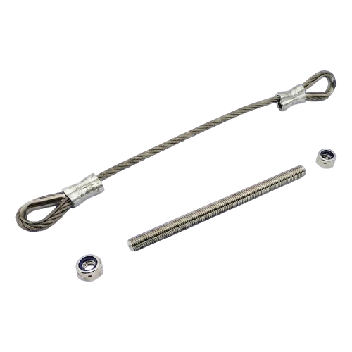 Lanko sa montuje medzi krídlo brány a bránový stĺpik — v prípade poruchy pántu je krídlo pridržané lankom a nespadne na podlahu. Závitová tyč M12 s dĺžkou 180 mm umožňuje bezpečné prevedenie upevnenia cez profily brány alebo stĺpika, a zabezpečovacie matice zabraňujú samovoľnému uvoľneniu spojenia pod vplyvom vibrácií a dynamických zaťažení. Súprava je univerzálna a pasuje k väčšine krídlových brán dostupných na trhu.