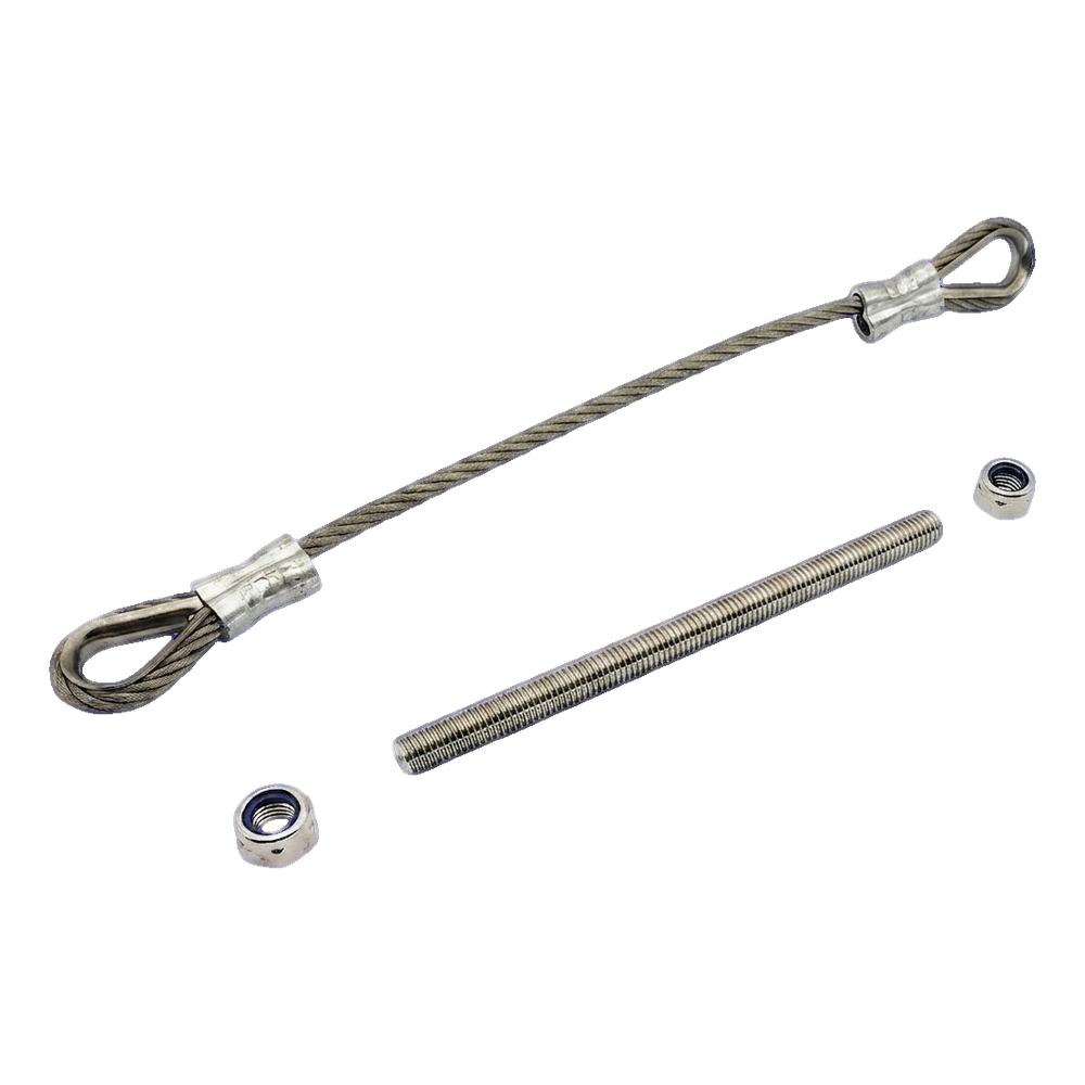 - Oceľové lanko z nerezovej ocele s dvoma nakovanými slučkami (očkami)
