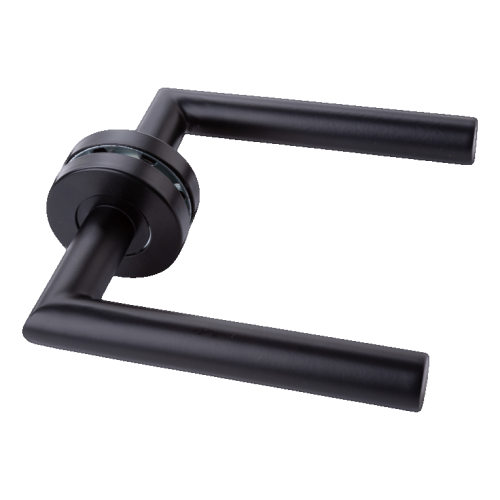 PSG Modena – kľučka dverová čierna rovná s oceľovým štítkom okrúhlym