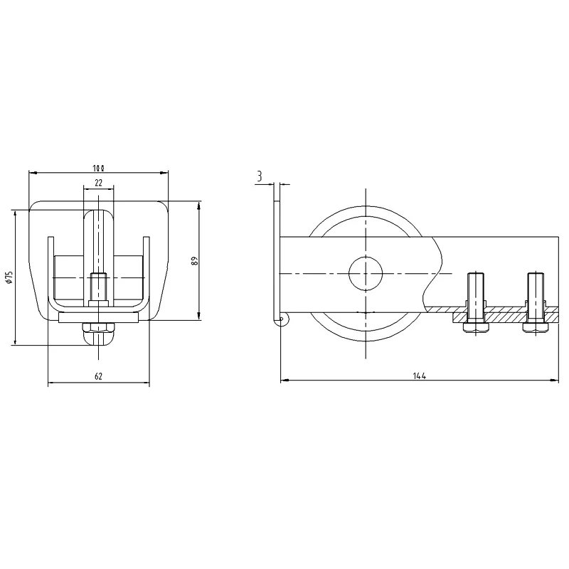 Nájazdová rolka pasuje na koľajnicu s prierezom 89×100×5 mm. V komplekte sa nachádzajú montážne skrutky, čo umožňuje okamžitú montáž bez potreby kompletizácie dodatočných spojovacích prvkov.