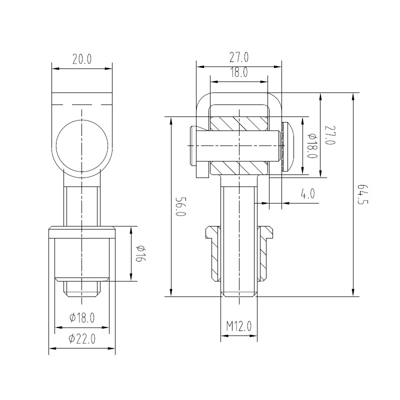 Vďaka matici na drieku M12 možno záves regulovať aj po dokončení montáže — napríklad keď sa konštrukcia prevesí pod ťarchou alebo kov zmení rozmery pod vplyvom extrémnych teplôt. Stačí dokrútiť alebo uvoľniť maticu, aby sa obnovilo správne nastavenie krídla. Prípustné zaťaženie páru závesu na krídle s dĺžkou 2 m je 40 kg.