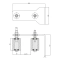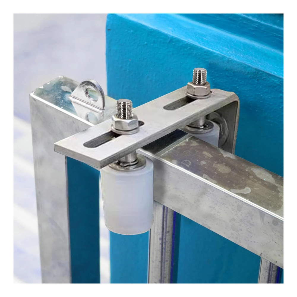 Vedenie sa montuje na hornú časť oplotového stĺpika alebo múru, kde obklopuje krídlo brány dvoma kladkami. Regulovateľný rozchod kladiek (svetlosť 49–79 mm) umožňuje prispôsobenie rôznym uzavretým profilom používaným v posuvných bránach. Skrutky M12 umožňujú spoľahlivé dotiahnutie kladiek a podlhovasté montážne otvory v stenovom držiaku uľahčujú presné vyrovnanie do vodorovnej polohy.