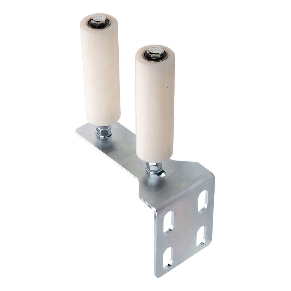 Konštrukcia s nastaviteľným rozostupom roliek (rozsah 49–79 mm) umožňuje prispôsobiť vedenie k bránam s rôznymi hrúbkami profilu — stačí jedna objednávka namiesto výberu viacerých variantov. Konzola vyrobená z pozinkovanej ocele hrúbky 5 mm garantuje tuhosť a trvanlivosť, a upevňovacie skrutky M12 prenášajú veľké zaťaženia. Produkt je ideálne vhodný pre brány s hladkým a uzavretým profilom, bez dekoratívnych prvkov.