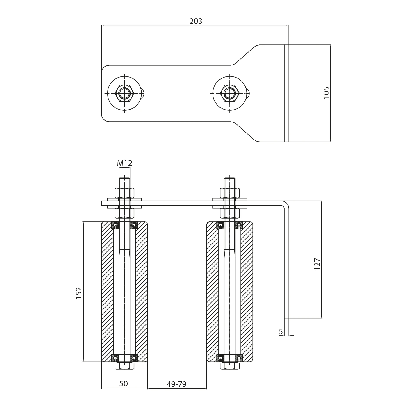- Solidná konštrukcia — plech 5 mm a skrutky M12 prenášajú značné zaťaženia