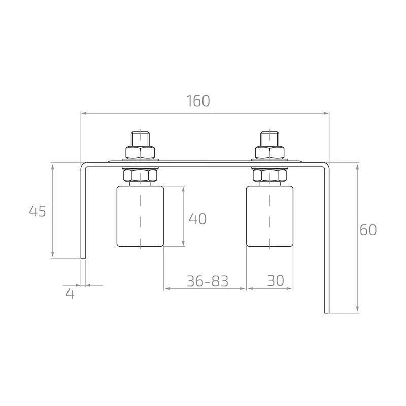 Horné vedenie nastaviteľné PSG je hotový stabilizačný element určený na montáž pre posuvné brány. Držiak vybavený dvoma bielymi valčekmi z umelej hmoty zabezpečuje plynulé a tiché vedenie krídla brány počas otvárania a zatvárania. Vďaka nastaviteľnému rozostupu valčekov v rozsahu 36–83 mm sa vedenie prispôsobí uzavretým profilom rôznej šírky, čo z neho robí univerzálne riešenie pre mnohé typy brán.