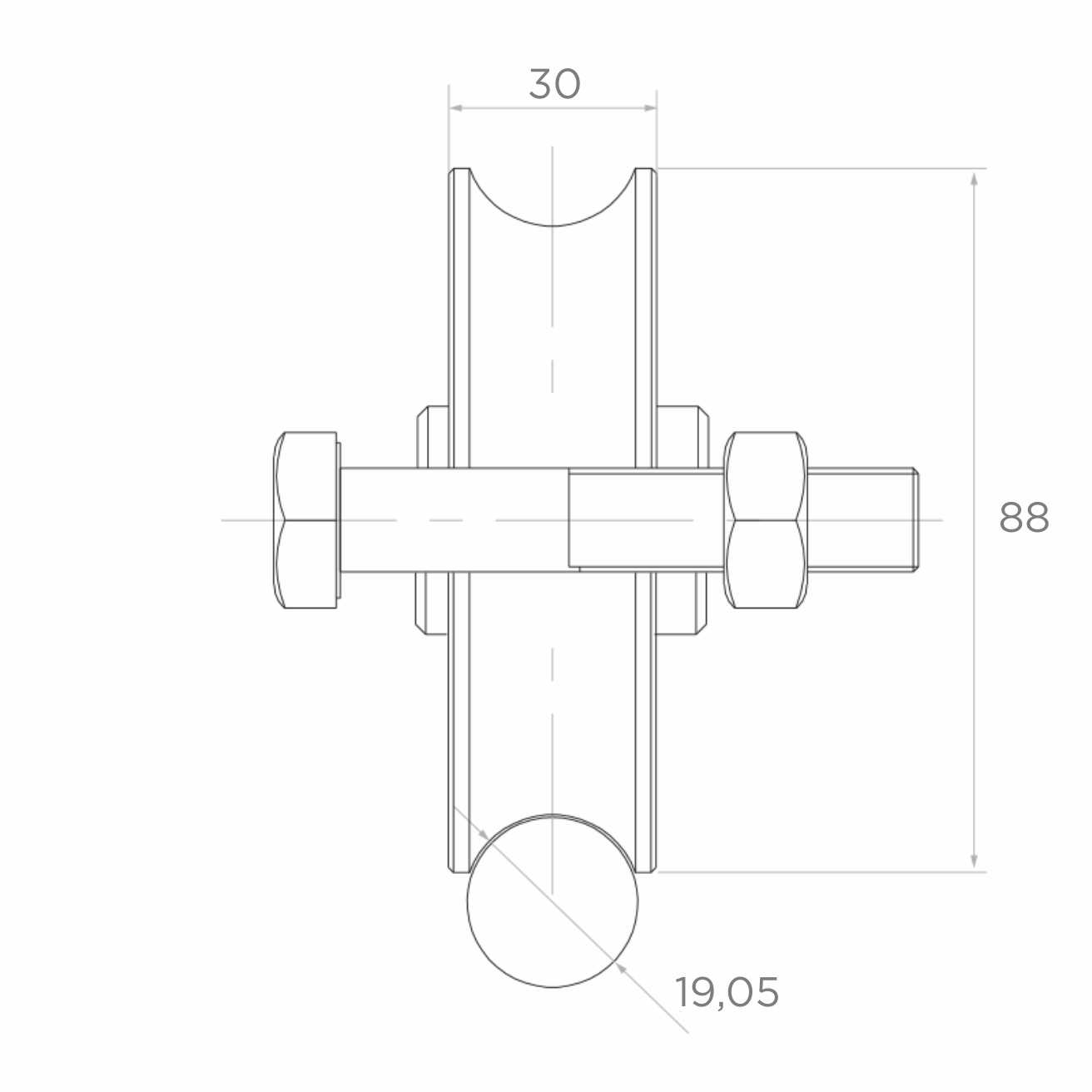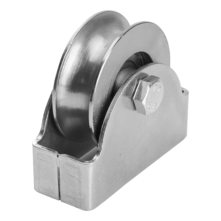 Rolka je určená pre spoluprácu s okrúhlymi koľajami (rúrami) s priemerom 3/4" (19,05 mm). Profil drážky typu 'O' zabezpečuje spoľahlivé osadenie na koľaji a minimalizuje bočné posuny krídla brány počas jazdy. Solidná oceľová oprava s masívnou skrutkou osi zaručuje trvalé upevnenie v ráme posuvnej brány.