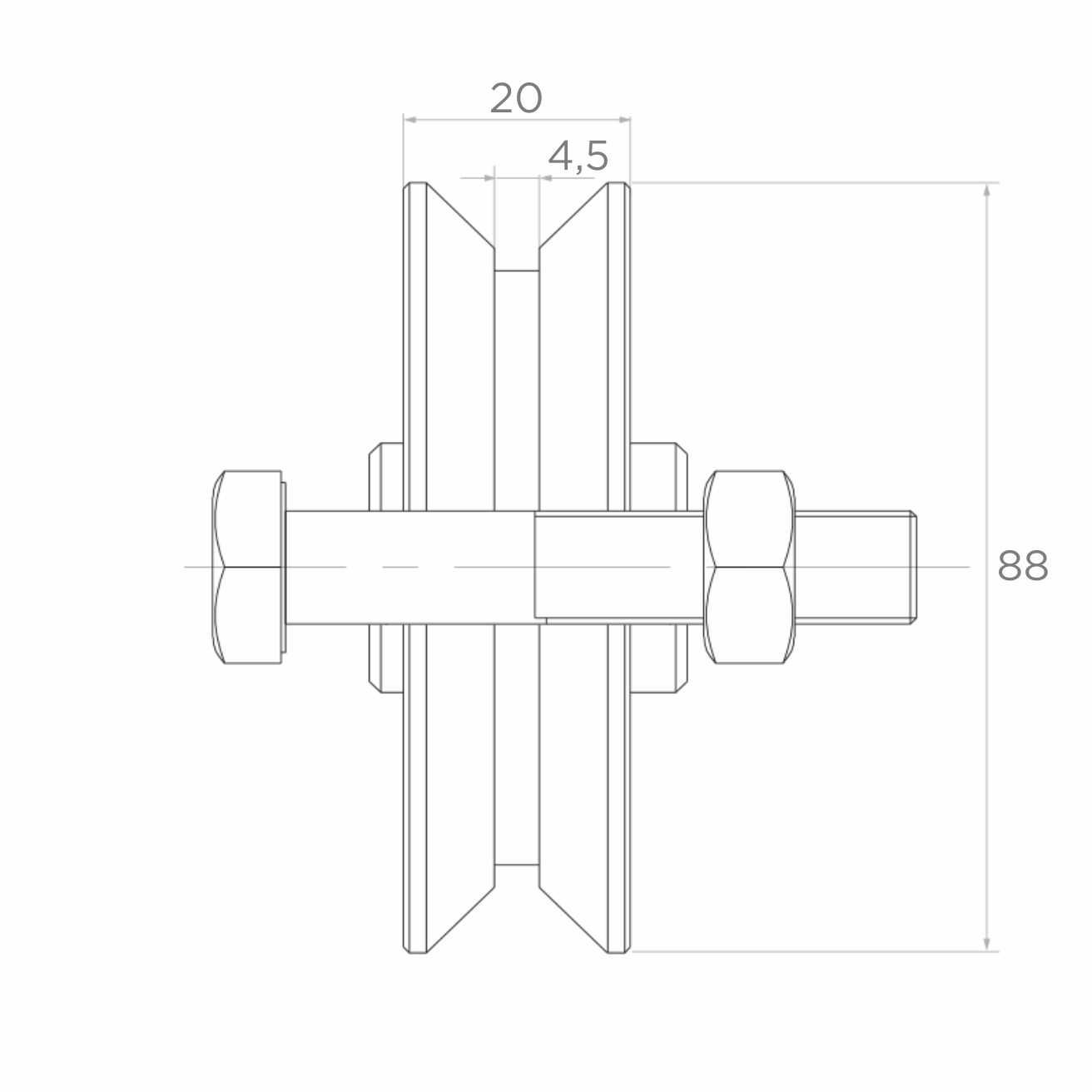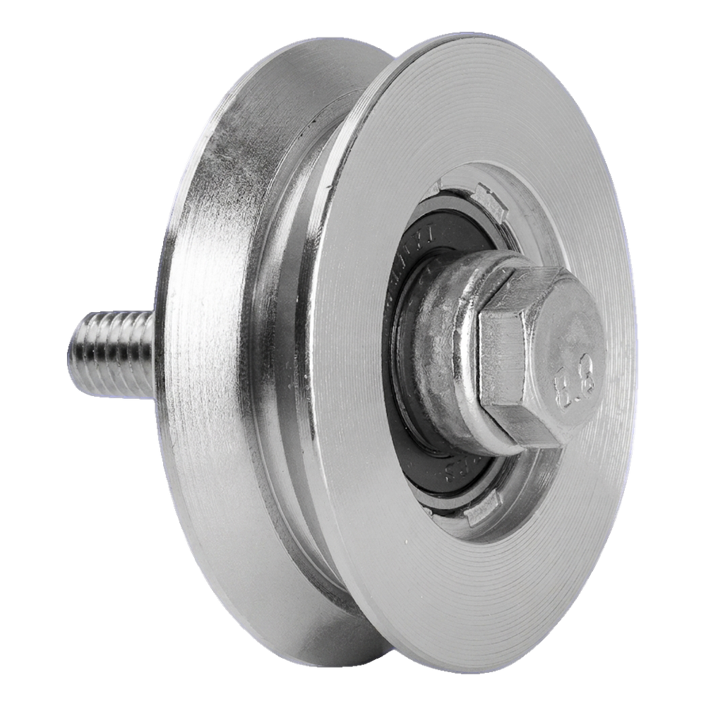 Jazdná rolka V je kľúčovým prvkom jazdného systému posuvnej brány. Montovaná na spodnom ráme brány spolupracuje s jazdnou koľajnicou profilu V, zabezpečujúc stabilné vedenie krídla brány. Profil drážky V zaručuje samocentrovanie rolky na koľajnici, eliminujúc bočné odchýlky brány počas pohybu. Vďaka pozinkovanému povrchu je produkt vhodný na prácu vonku — je odolný proti dažďu, snehu a premenlivým atmosférickým podmienkam.