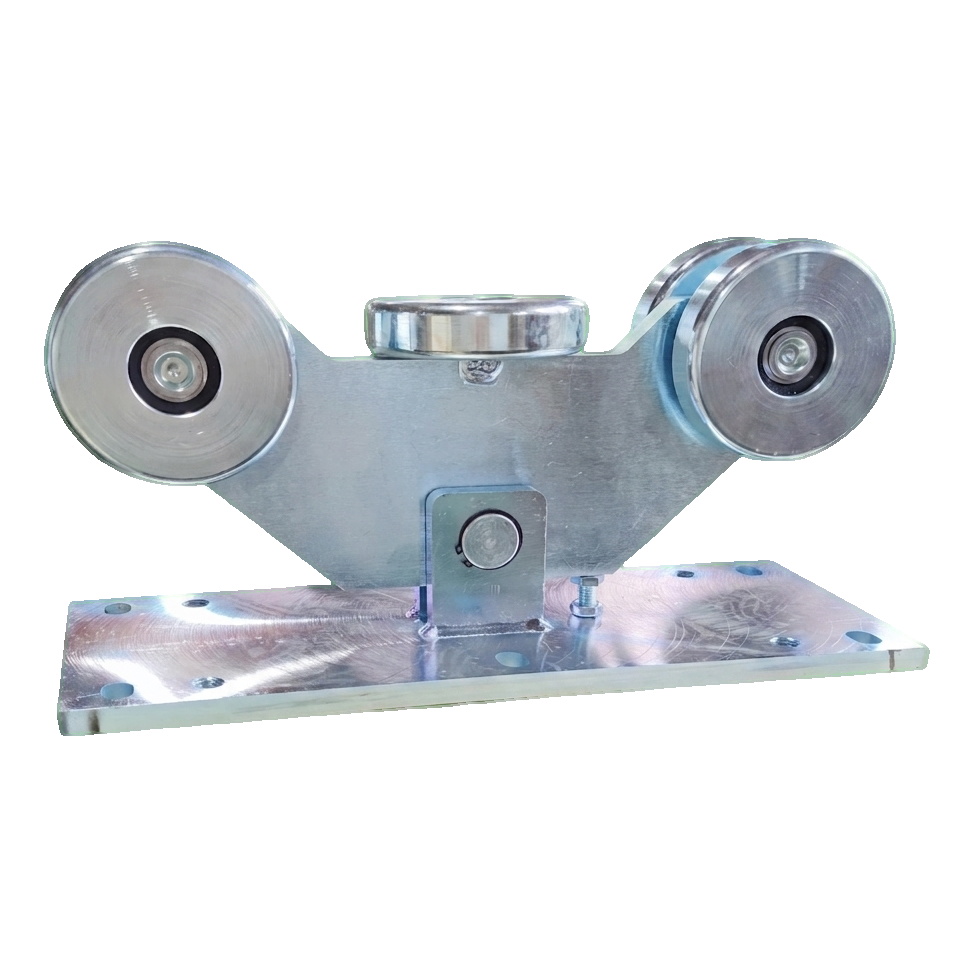 Použitie jedného horizontálneho valčeka zabezpečuje dodatočnú bočnú oporu krídla vnútri koľajnice. V praxi to znamená lepšiu kontrolu jazdného pásu — brána sa neodchyľuje do strán, neotiera o stienky koľajnice a negeneruje nadmerný hluk. To je dôležitá výhoda najmä pri dlhých krídlach, ktoré bez bočnej stabilizácie majú tendenciu k plavaniu.