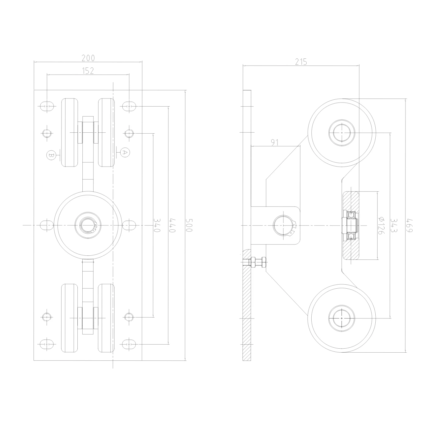 PSG jazdný vozík portálový 5-valčekový na koľajnicu 140 mm – oceľové valčeky ⌀126 mm