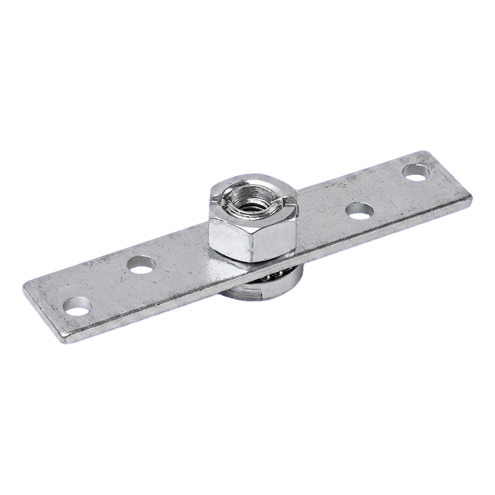 Montážna doska PSG 38 je oceľový prvok slúžiaci na otočné upevnenie súpravy koliesok v systémoch posuvných brán. Vďaka vstavanej otočnej skrutke s maticou zabezpečuje plynulú prácu jazdného vozíka, umožňuje kompenzáciu nerovností koľajnice a eliminuje nadmerné namáhanie koliesok.