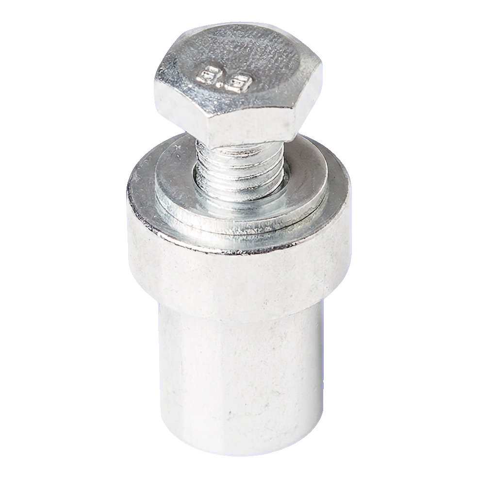 Puzdrová spojka je pozinkovaná, čo zaručuje vysokú odolnosť voči korózii aj v náročných atmosférických podmienkach. Kompaktná konštrukcia a nízka hmotnosť (46 g) uľahčujú montáž — postačuje štandardný kľúč na šesťhranné skrutky M8. Prvok sa dodáva v kompletu so skrutkou M8 × 25 mm triedy 8.8 a podložkou, takže nie je potrebné dokupovať ďalšie príslušenstvo.