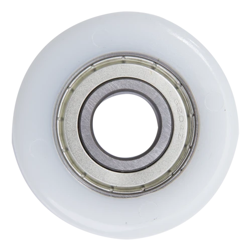 Koliesko je vyrobené z odolnej umelej hmoty, ktorá zabezpečuje tichý a plynulý chod brány, a zároveň je odolné voči korózii a nevyžaduje mazanie vonkajšej jazdnej plochy. V centre je namontované guľôčkové ložisko 6204Z s obojstranným kovovým krytom, zaručujúce dlhú životnosť a nízky odpor valenia aj pri intenzívnom používaní.