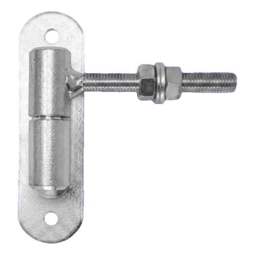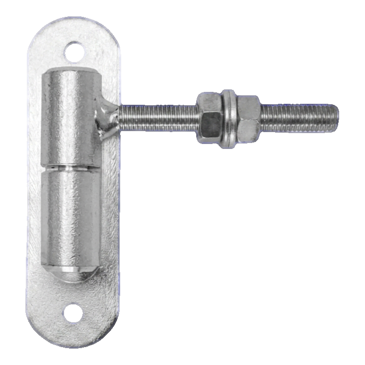 Oceľový nastaviteľný valčekový pant s guľou a montážnym štítkom – spoľahlivé riešenie na zavesenie plotových bránok. Závit M12 s nastavovacou maticou umožňuje presné nastavenie zvislej polohy bránky v akomkoľvek momente – ako hneď po montáži, tak aj počas prevádzky, keď konštrukcia povesne alebo sa zmenia teplotné podmienky.