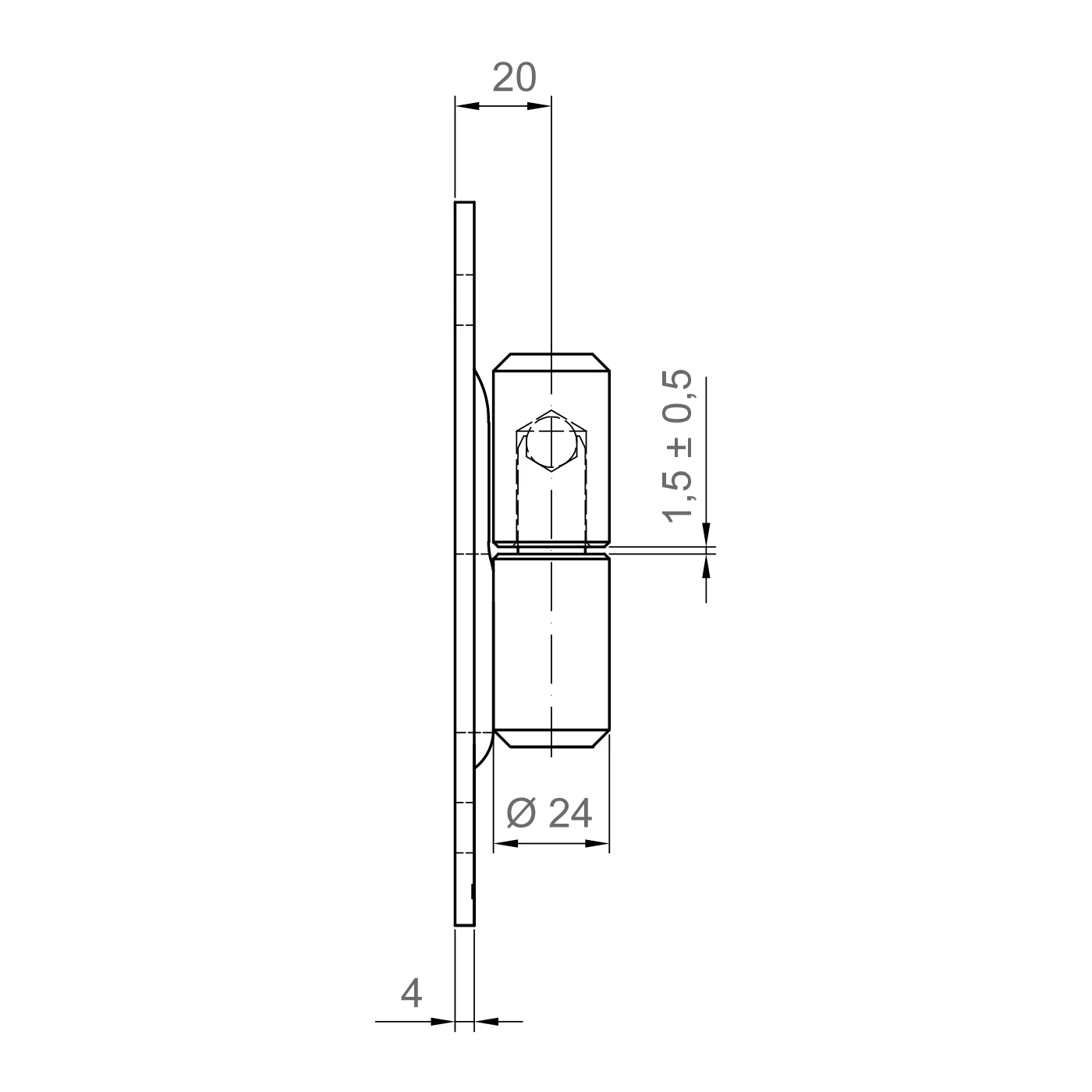 - Vzdialenosť osi otáčania od montážnej roviny: 20 mm