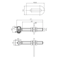 Čap závesu je pozinkovaný, čo zaručuje odolnosť proti korózii a dlhodobú prevádzku v premenlivých atmosférických podmienkach. Ucho a spojka sú vyhotovené z čiernej ocele — prvok je určený na maľovanie alebo montáž v krytých konštrukciách.