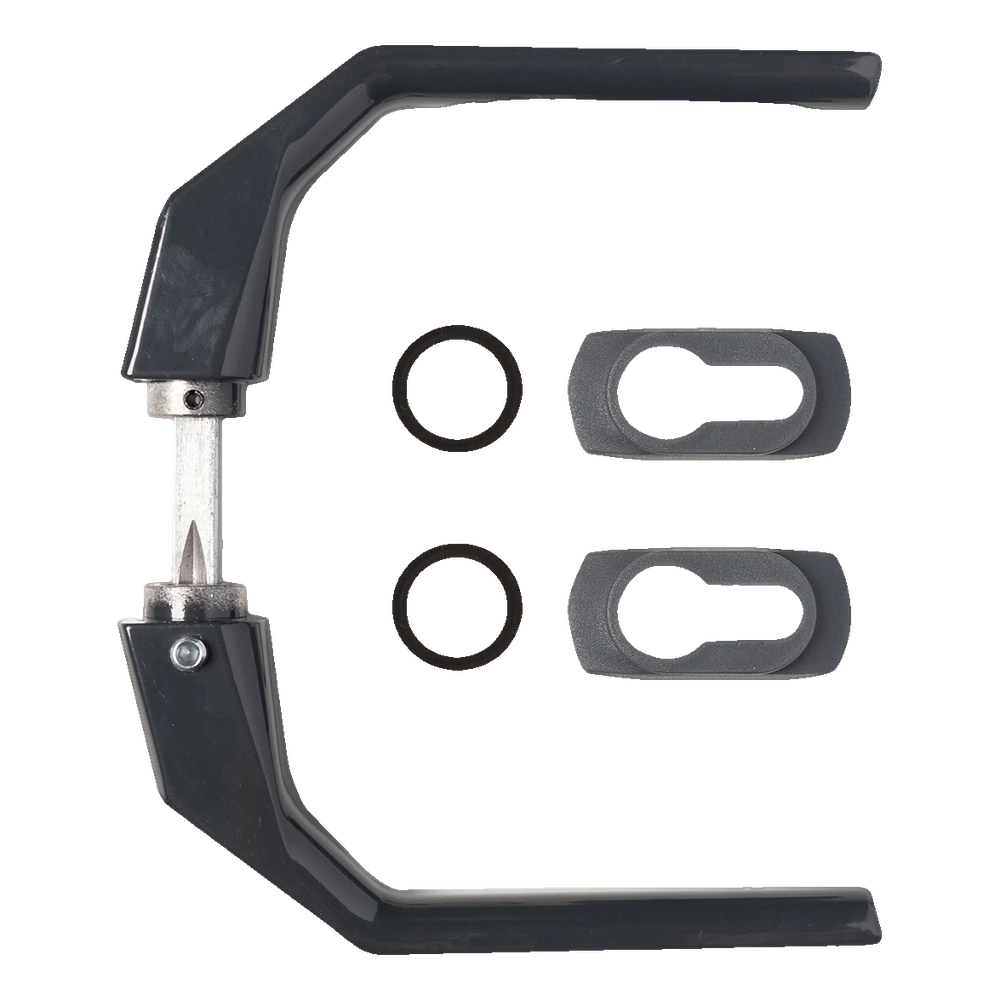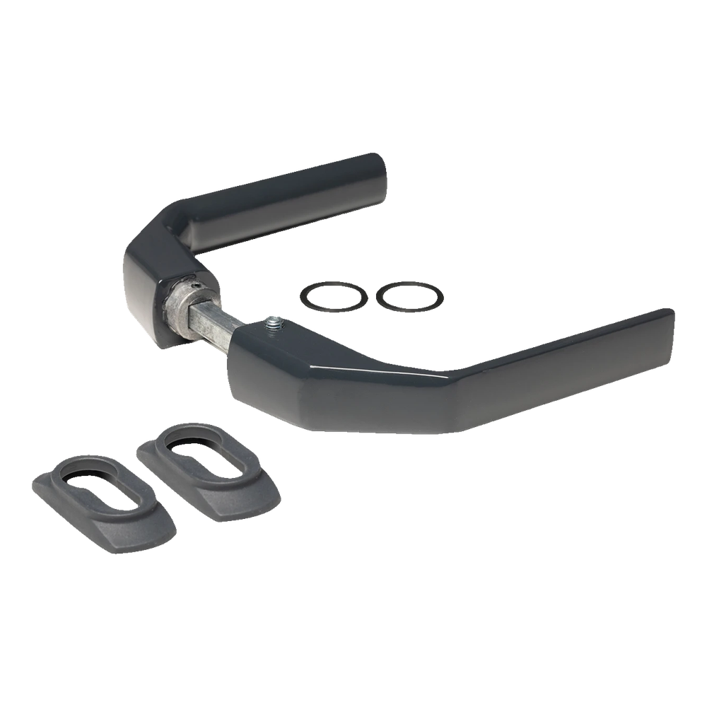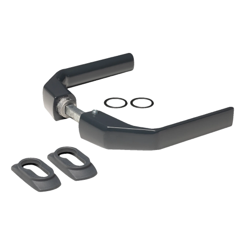 Kompletná sada kľučiek PSG v antracitovej farbe (RAL 7016) je pripravené montážne riešenie na vstupné dvere, brány a bránky. Elegantné dokončenie práškovým lakovaním zabezpečuje trvalú odolnosť voči korózii a poveternostným podmienkam, a ergonomický tvar úchytov zaručuje istý úchop nezávisle od strany montáže.