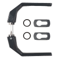 V balení sa nachádzajú dve kľučky (pravá a ľavá) spojené trzpienkom, dve maskovnice na vložku bubienka a tesnenie krúžky. Vďaka tomu po otvorení balenia môžete ihneď pristúpiť k montáži — bez potreby kompletovať dodatočné prvky. Oceľová konštrukcia s trvalým práškovým lakovaním spôsobuje, že kľučky sa osvedčujú tak vo vnútorných dverách, ako aj v externých podmienkach — na záhradných bránkach či posesných bránach.