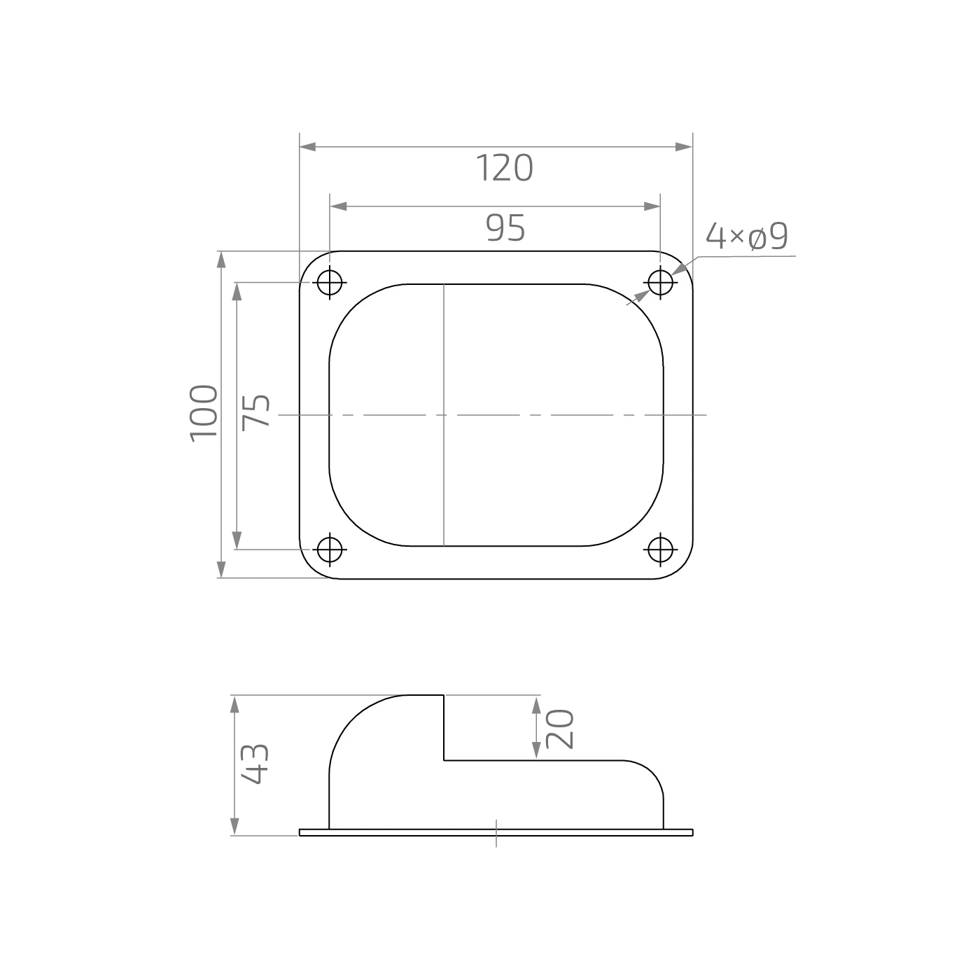- Priemer montážnych otvorov: 4 × ⌀9 mm
