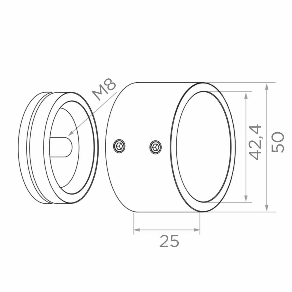 Osový montážny prírubok je profesionálny upevňovací prvok určený na montáž madla nerezového zábradlia s priemerom 42,4 mm priamo na stenu. Vyrobený z vysokokvalitnej nerezovej ocele AISI 304 so saténovou úpravou, zabezpečuje estetické a trvalé spojenie madla s montážnou plochou. Dvojdielna konštrukcia — montážna základňa so závitom M8 a prítlačná objímka so skrutkami — umožňuje rýchlu a presnú montáž, čo je osobitne dôležité pri realizácii väčších projektov balkónových a terásových zábradlí.