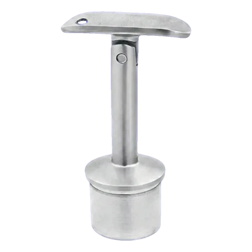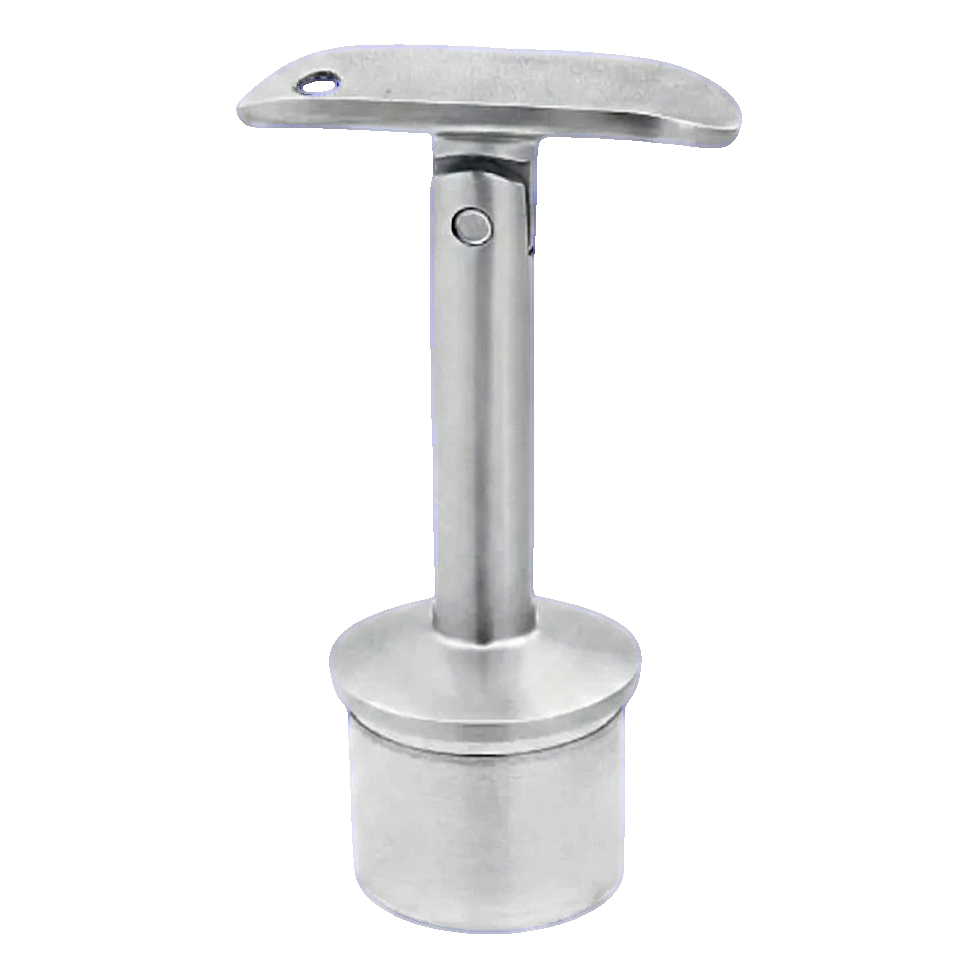 Kĺbová podpora zábradlia z nehrdzavejúcej ocele AISI 316 určená na spájanie stĺpa balustrády so zábradlím v systéme 42,4 mm. Element montovaný lepením čapu do rúry stĺpa pomocou anaeróbneho lepidla — lepidlo sa viaže pod vplyvom kontaktu s kovom a tvrdne prerušením prístupu kyslíka, čo zabezpečuje trvalé a spoľahlivé spojenie bez nutnosti zvárania.