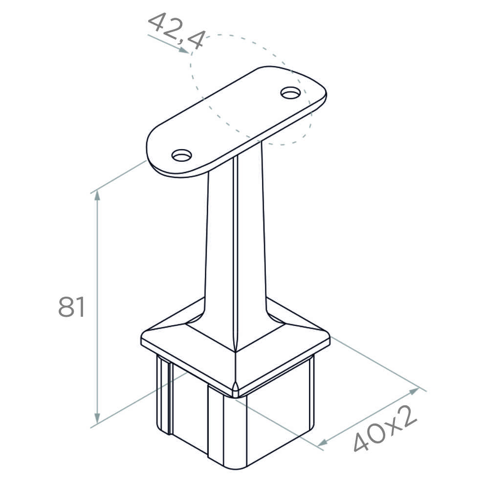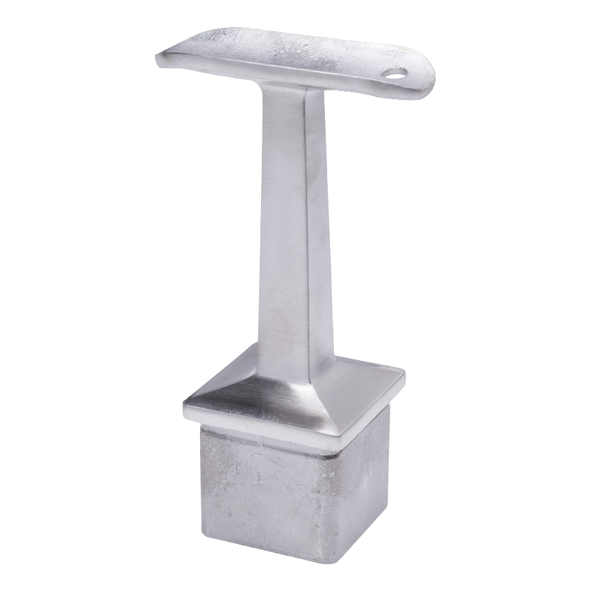 Podpora zábradlia PSG je precízne vyhotovený spojovací prvok z nehrdzavejúcej ocele AISI 304 v saténovom prevedení, určený na spojenie štvorcového stĺpika 40×40 mm so zábradlím s priemerom 42,4 mm. Prvok sa montuje metódou anaeróbneho lepenia — zabezpečuje trvalé, estetické a neviditeľné spojenie bez zvárania, čo výrazne urýchľuje montáž zábradlia na objekte.