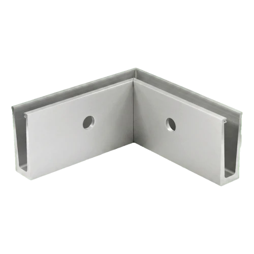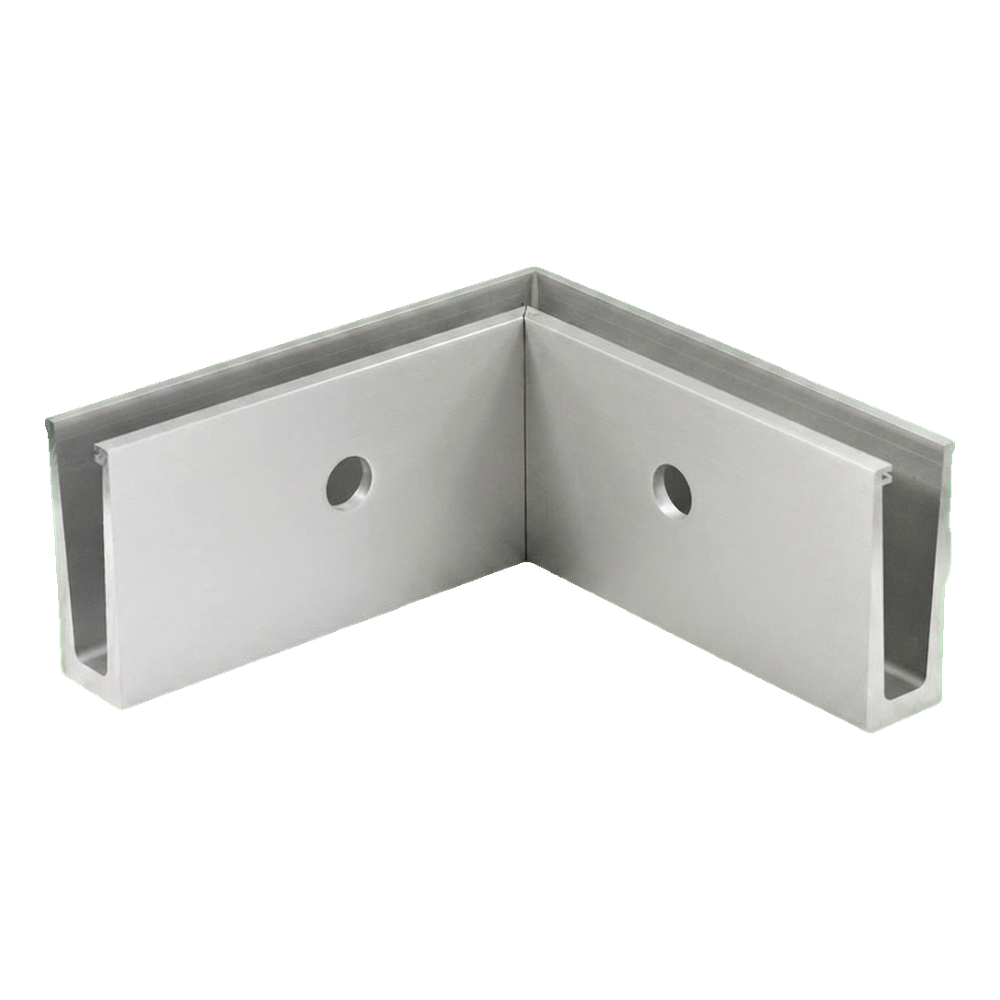 Hliníkový profil rohový vnútorný pre celosklenené (bezstĺpikové) zábradlia s bočnou montážou. Umožňuje estetické vyvedenie uhla 90° pri zabudovaní tvrdeného alebo laminovaného skla. Vďaka plochému systému a surovému povrchu hliníka profil dokonale imituje vzhľad nerezovej ocele v saténe, a pritom zostává ľahší a ľahšie spracovateľný.