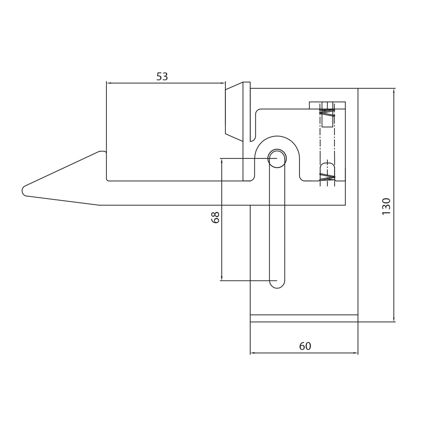 - Dĺžka záchytu (oporného prvku): 50 mm (konštrukčný rozmer 53 mm)