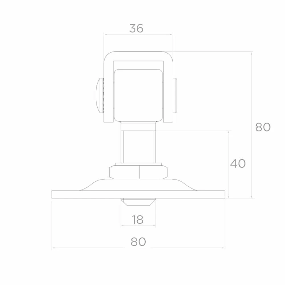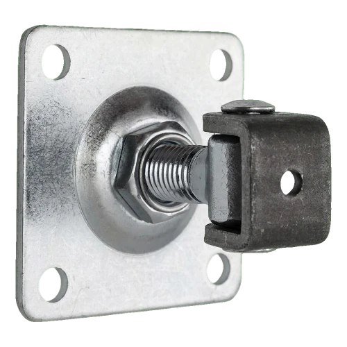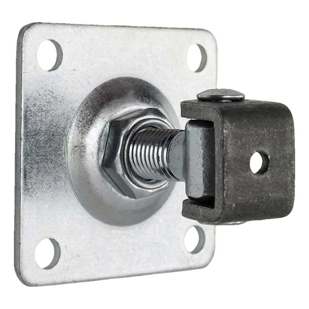 Oceľový regulovateľný záves PSG so skrutkou M18 určený na montáž krídlových brán a vrátok. Štít s rozmermi 80×80 mm so štyrmi montážnymi otvormi zaisťuje stabilné a spoľahlivé upevnenie k stĺpiku. Vďaka závitovej regulácii možno záves presne vyrovnať krídlo brány v ktoromkoľvek momente — tak pri montáži, ako aj po rokoch používania, keď sa konštrukcia prevesí alebo tepelne deformuje.
