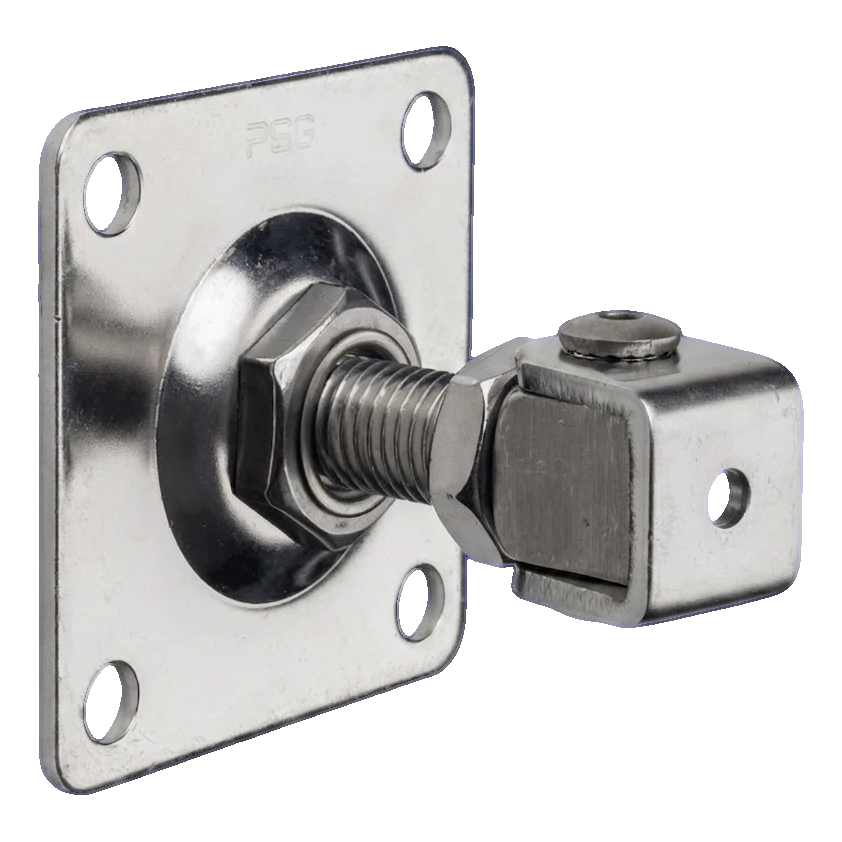 PSG regulovateľný brankový záves M20 so štítkom 100×100 mm – nehrdzavejúca oceľ AISI 304