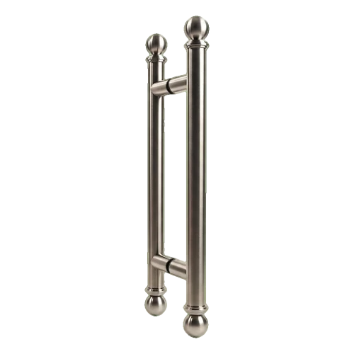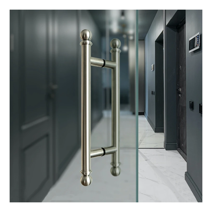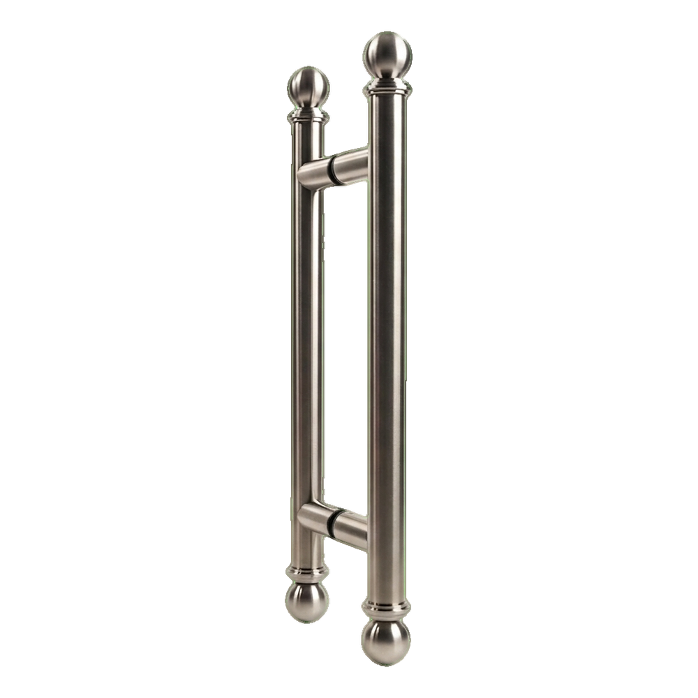 Rukoväť obojstranná PSG je elegantná dverová rukoväť s klasickým dizajnom, vyrobená celá z vysokokvalitnej nerezovej ocele AISI 304 v saténovom prevedení. Dekoratívne zakončenia v tvare gúľ jej dodávajú štýlový, reprezentačný charakter — ideálny pre komerčné objekty, kancelárie, hotely a exkluzívne obytné interiéry.