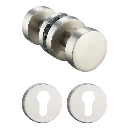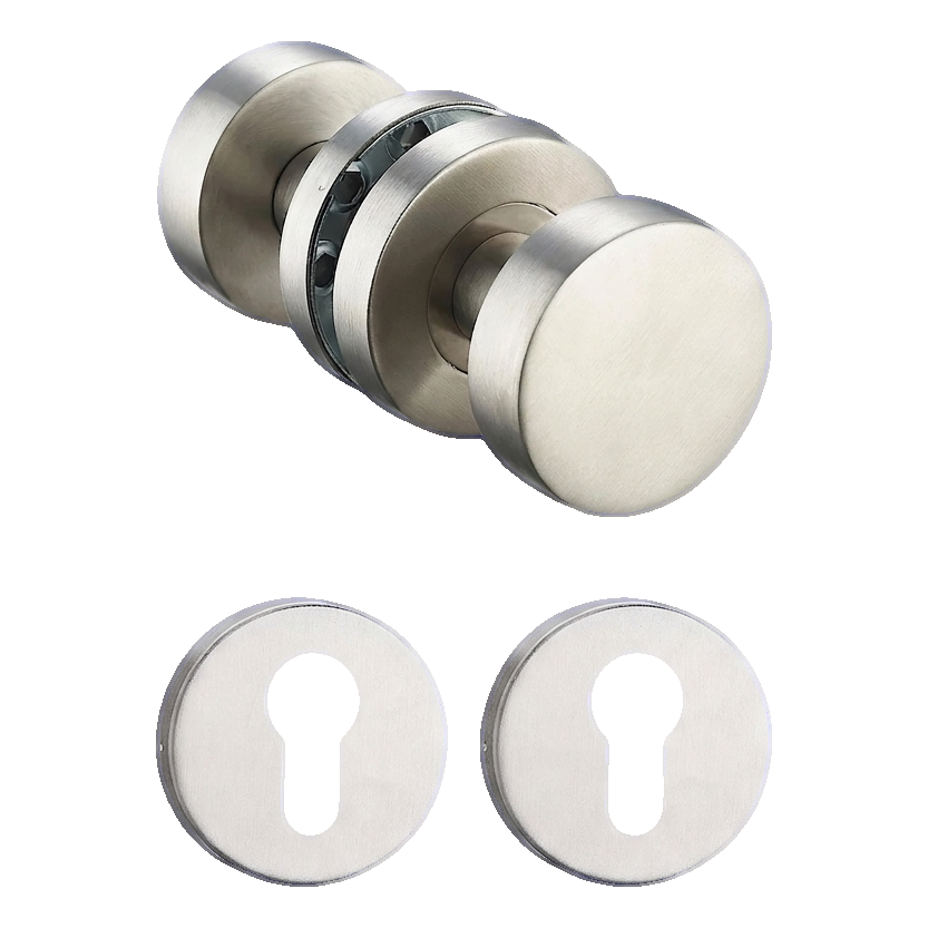 Súprava kľučka-kľučka PSG je kompletná, pripravená na montáž súprava dverového kovania z nehrdzavejúcej ocele AISI 304, určená pre vnútorné dvere v obytných, kancelárskych a verejných objektoch. Pohyblivé kľučky s priemerom 50 mm v kombinácii s okrúhlymi štítkami pod cylindrickú vložku (PZ) zaručujú estetické a trvanlivé dokončenie dverí, a nehrdzavejúca oceľ zabezpečuje dlhoročnú odolnosť proti korózii a intenzívnemu používaniu.