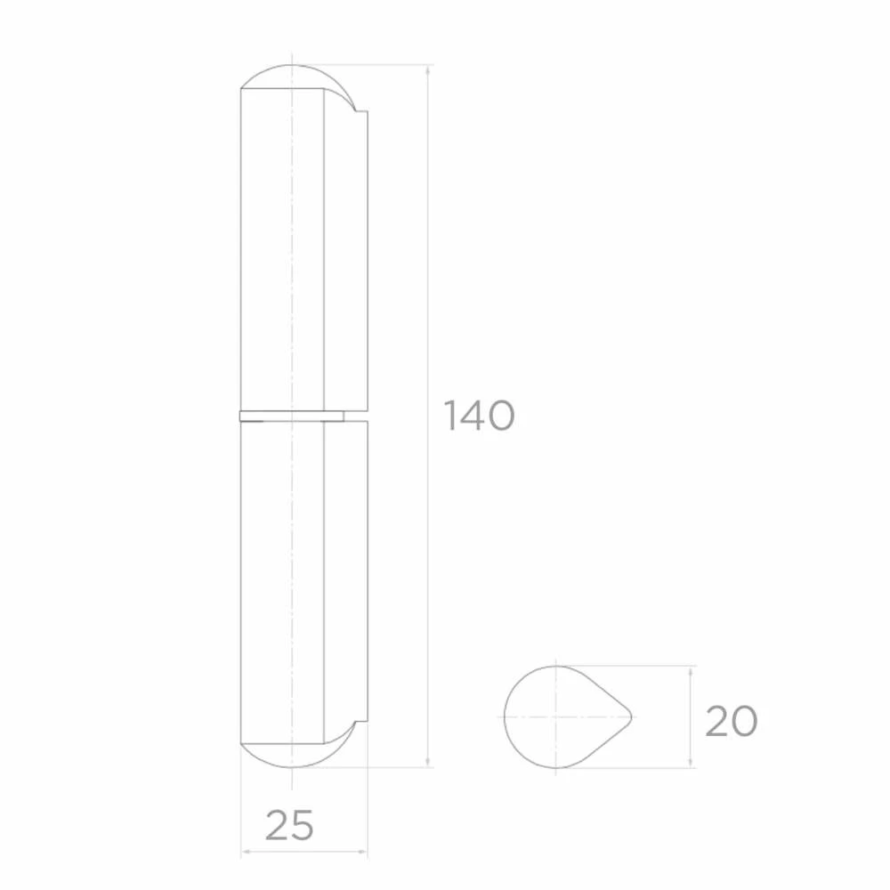 Valcovaný záves na privarenie PSG s rozmermi D20 × H140 × L25 mm je pevný prvok určený na montáž brán a bránok. Vyrobený z vysokokvalitnej ocele, zaručuje trvanlivosť, odolnosť voči zaťaženiu a bezporuchovú prácu po roky. Slzičkový profil zabezpečuje stabilné osadenie po privarení ku nosnej konštrukcii a valcovaná konštrukcia umožňuje plynulý pohyb krídla brány bez trhania a nadmerného trenia.