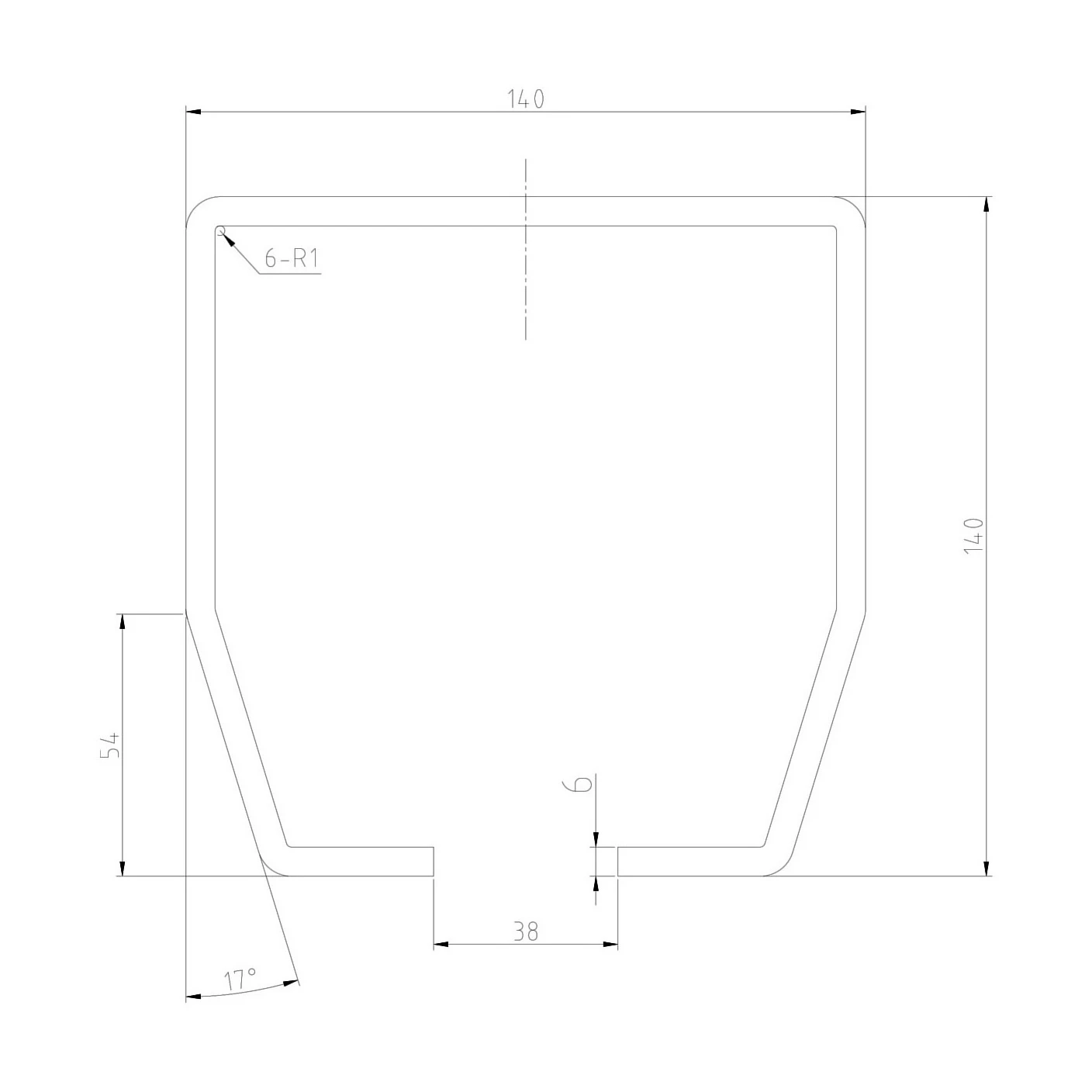- Pevný prierez 140 × 140 mm s hrúbkou steny 6 mm — vysoká tuhosť a odolnosť proti deformáciám pri veľkej hmotnosti brány
