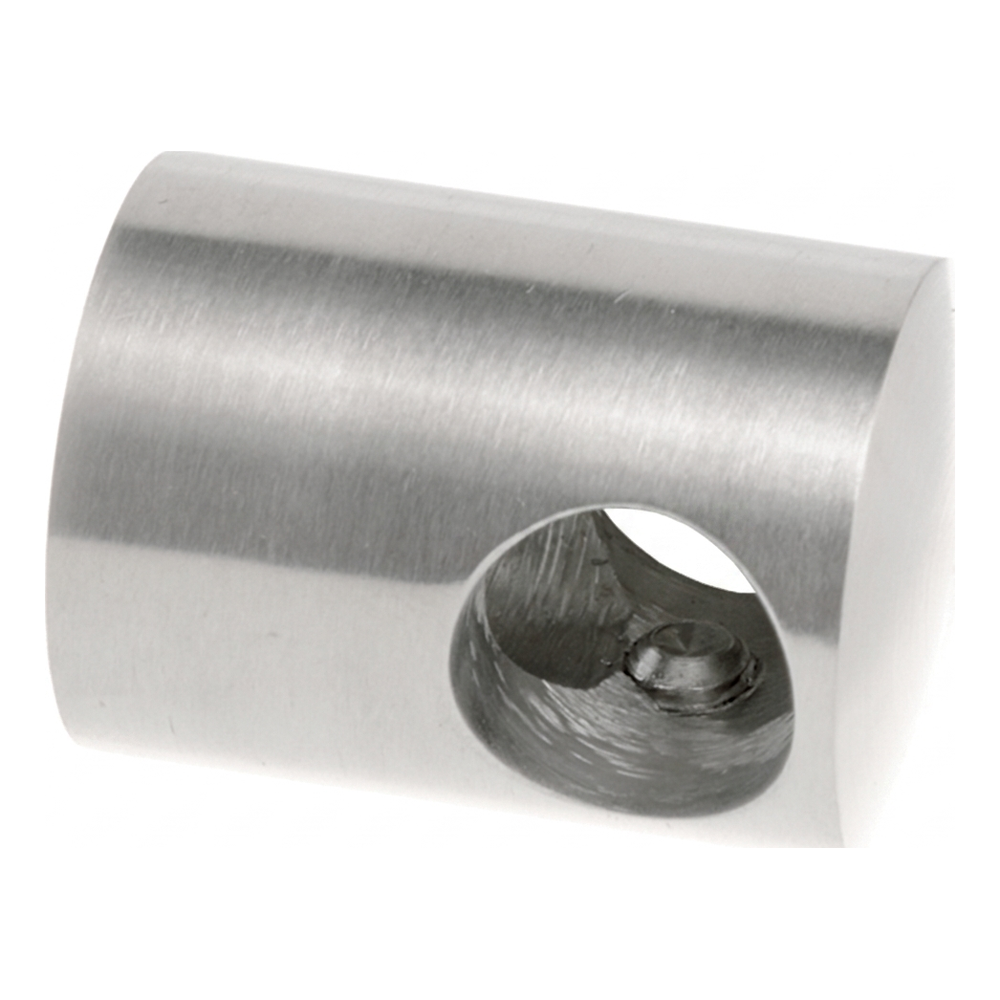 Záchytka má formu cylindrického korpusu s priechodovým otvorom, cez ktorý prechádza tyč alebo rúra. Upevnenie na plochu sa realizuje zdola pomocou montážneho otvoru. Dva bočné prítlačné skrutky umožňujú spoľahlivé zablokovanie tyče vo vnútri záchytky. Vďaka kompaktným rozmerom sa prvok diskrétne komponuje s moderným dizajnom zábradlí z nerezovej ocele.