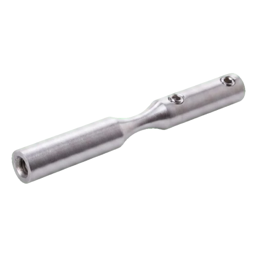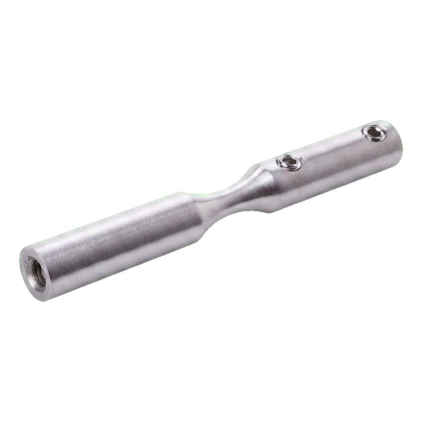 Prvok vyrobený z nerezovej ocele AISI 304 s povrchovou úpravou satén zabezpečuje vysokú odolnosť proti korózii a estetický, umiernený vzhľad. Montáž prebieha vskrutkovaním — držiak je vybavený závitmi M6 a blokovacími otvormi (Ø6 mm), čo zaručuje stabilné a trvalé spojenie s lankom a nosnou konštrukciou.