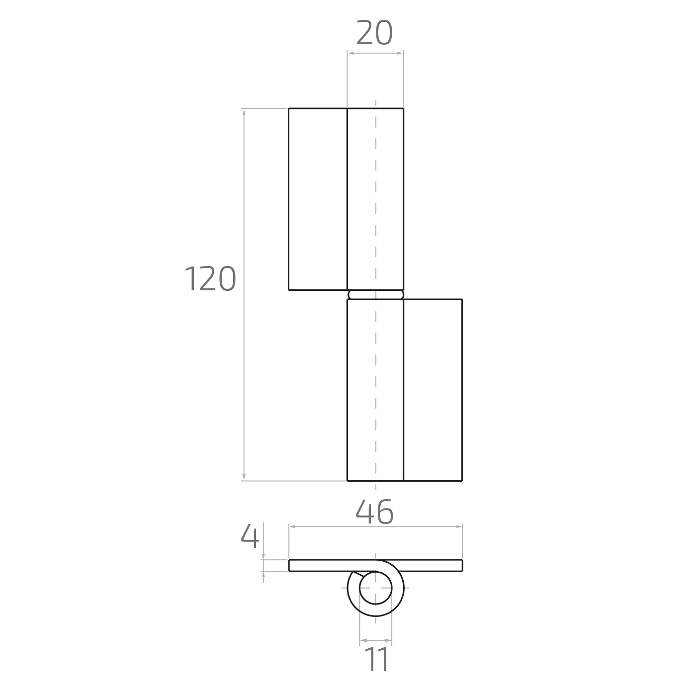 Dvojdielna konštrukcia s púzdrom a čapom zabezpečuje plynulú prácu otvárania a zatvárania, a hrúbka krídiel 4 mm garantuje vysokú odolnosť proti deformácii aj pri veľkých záťažiach. Závesa sa dodáva v neopracovanom stave — môže sa zabezpečiť antikorózne (maľovanie, zinkovanie) prispôsobením povrchových úprav celej konštrukcie.