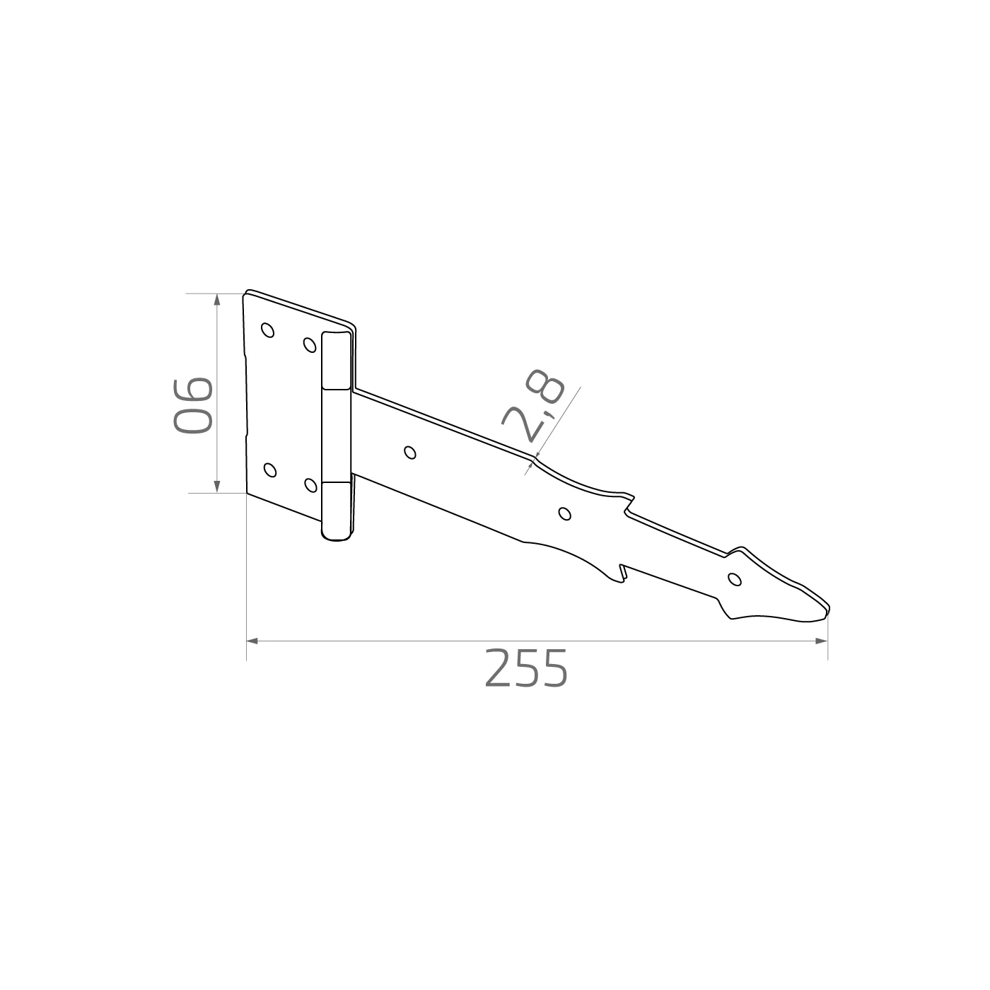 Pant altánkový 250 mm v čiernej farbe je odolný kovaný prvok určený na montáž dverí, bránok, záhradných brán a altánkov. Ozdobné zakončenie ramena v tvare hrotu dodáva pantu dekoratívny charakter, vďaka čomu sa dokonale hodí k dreveným a kovovým plotovým a záhradným konštrukciám.