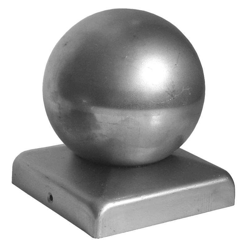 Oceľová plotová krytka s ozdobnou guľou určená na dokončenie stĺpikov so štvorhranným prierezom 80×80 mm. Pozinkovaný povrch zabezpečuje trvalú protikoróziu ochranu, vďaka čomu si krytka zachováva estetický vzhľad mnoho rokov — aj v náročných poveternostných podmienkach.
