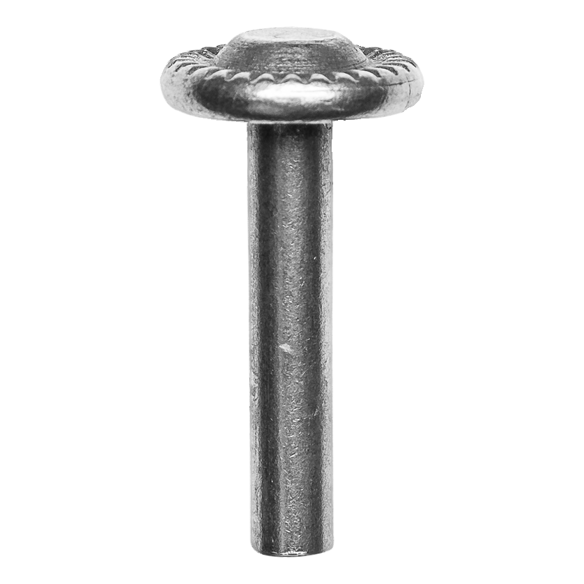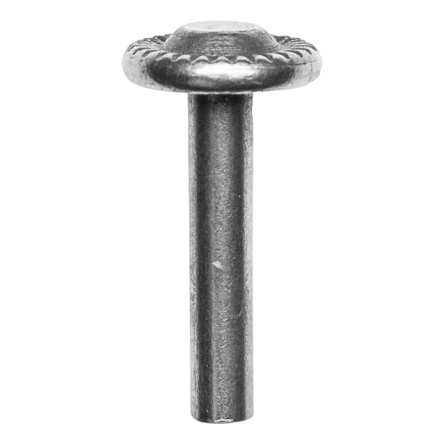 Oceľový ozdobný nit Postal určený na trvalé, nerozdeliteľné spájanie prvkov kovových konštrukcií s dekoratívnou funkciou. Vďaka ozubenej podložke hlavy sa nit spoľahlivo osadí v materiáli a dodá hotovej konštrukcii estetický, kovaný charakter — ideálny na vjezdové brány, branky, plotové dielce a zábradlia.