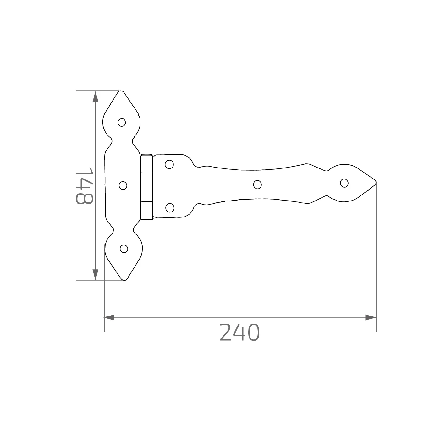 - Typ: ozdobný pásový závěs (T-hinge)