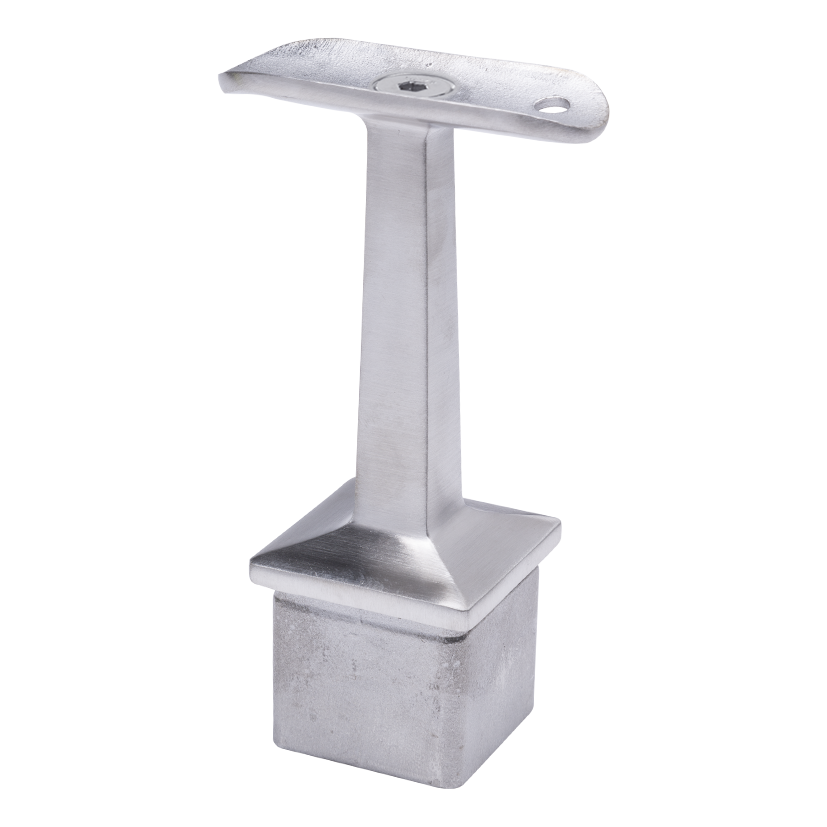 Podpora zábradlia Postal je pevný spoj určený na montáž zábradlia s priemerom Ø42,4 mm na štvorcové stĺpiky systému 40x40 mm. Prvok vyrobený z nehrdzavejúcej ocele AISI 304 v saténovom povrchu spája estetický vzhľad s odolnosťou voči poveternostným podmienkam — ideálna voľba pre vnútorné aj vonkajšie zábradlia.