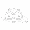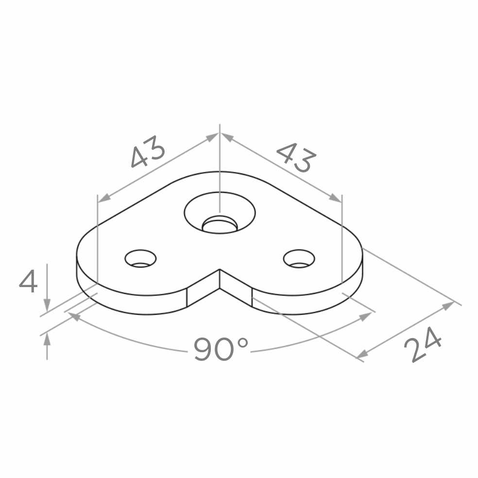 Rohová montážna pleška pre systém plochých zábradlí, určená na upevnenie zábradlia zhora k plochým povrchom pomocou skrutky. Vďaka kompaktnej forme v tvare uhlovníka 90° a trom montážnym otvorom zabezpečuje stabilné a estetické rohové spojenie prvkov balustrády.