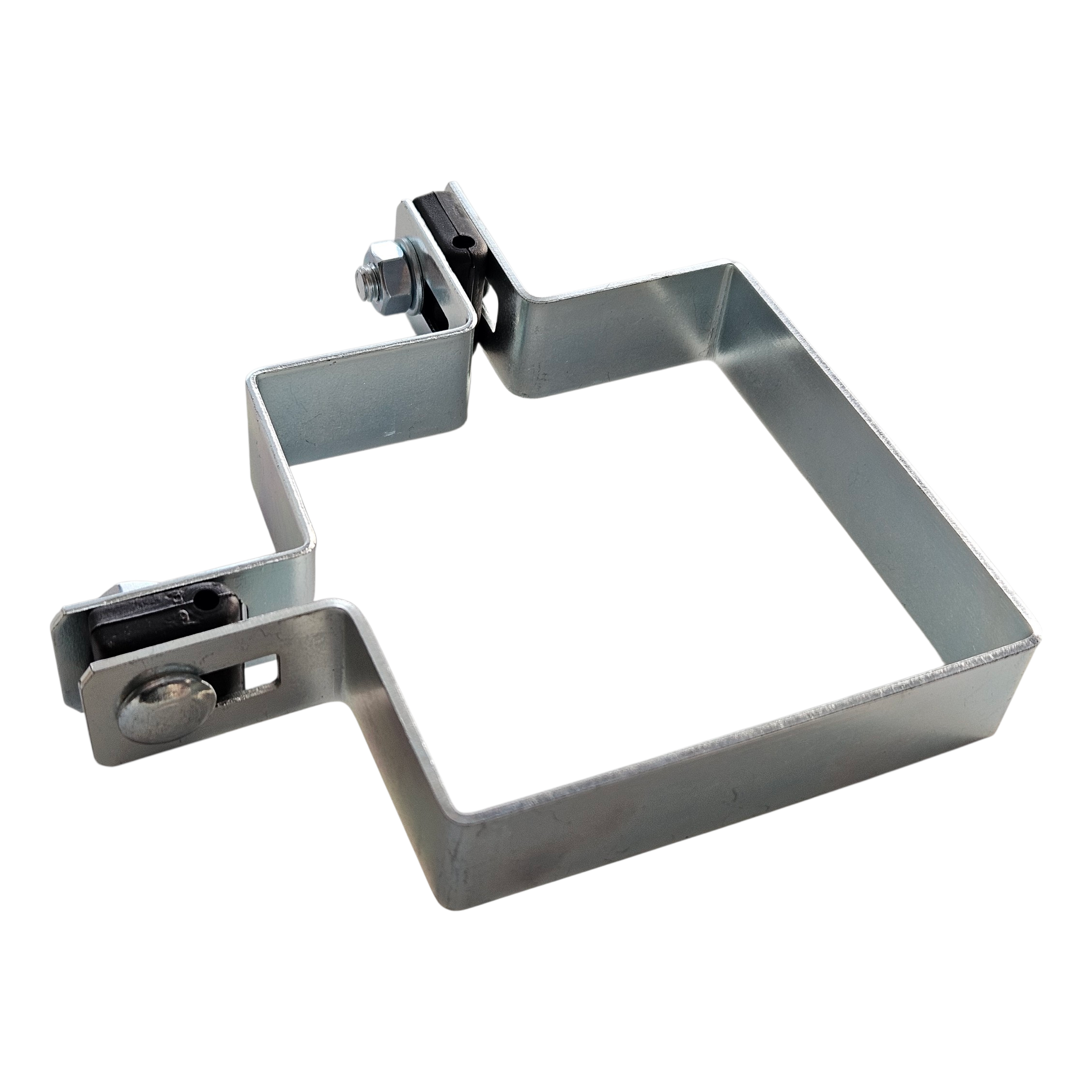 Objímka je ideálne prispôsobená prierezu stĺpika 100×100 mm, čo zaručuje stabilné a spoľahlivé spojenie plotovej konštrukcie. Montážne otvory v tvare fazule umožňujú reguláciu pozície panela voči stĺpiku — uľahčujú vyrovnanie plota aj na nerovnom teréne.