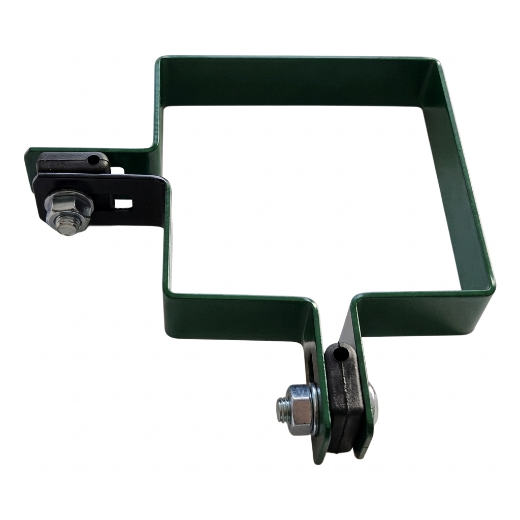 Svorka je ideálne prispôsobená prierezu stĺpika 100×100 mm, čo zaručuje stabilné a spoľahlivé spojenie plotovej konštrukcie. Montážne otvory v tvare fazule umožňujú reguláciu polohy panela vzhľadom na stĺpik — uľahčujú vyrovnanie plota aj na nerovnom teréne.