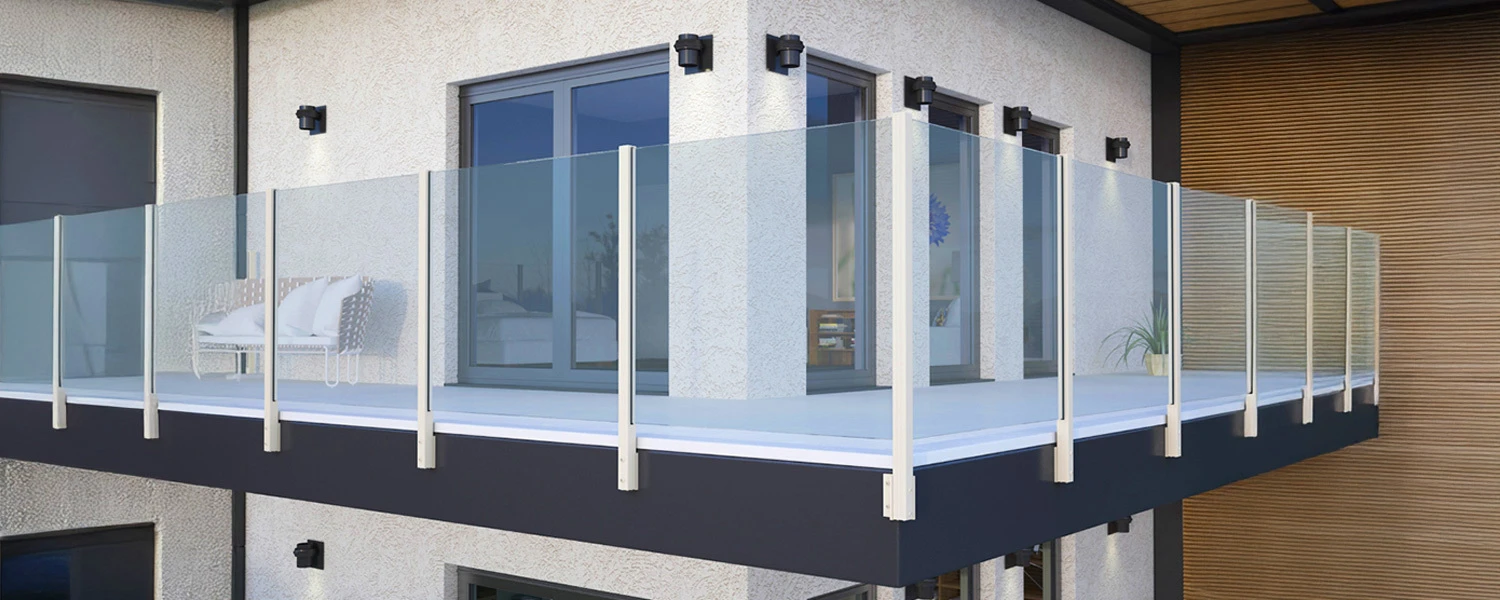 - Variant stĺpika: rohový vonkajší — stabilné vedenie skla pod uhlom v rohoch