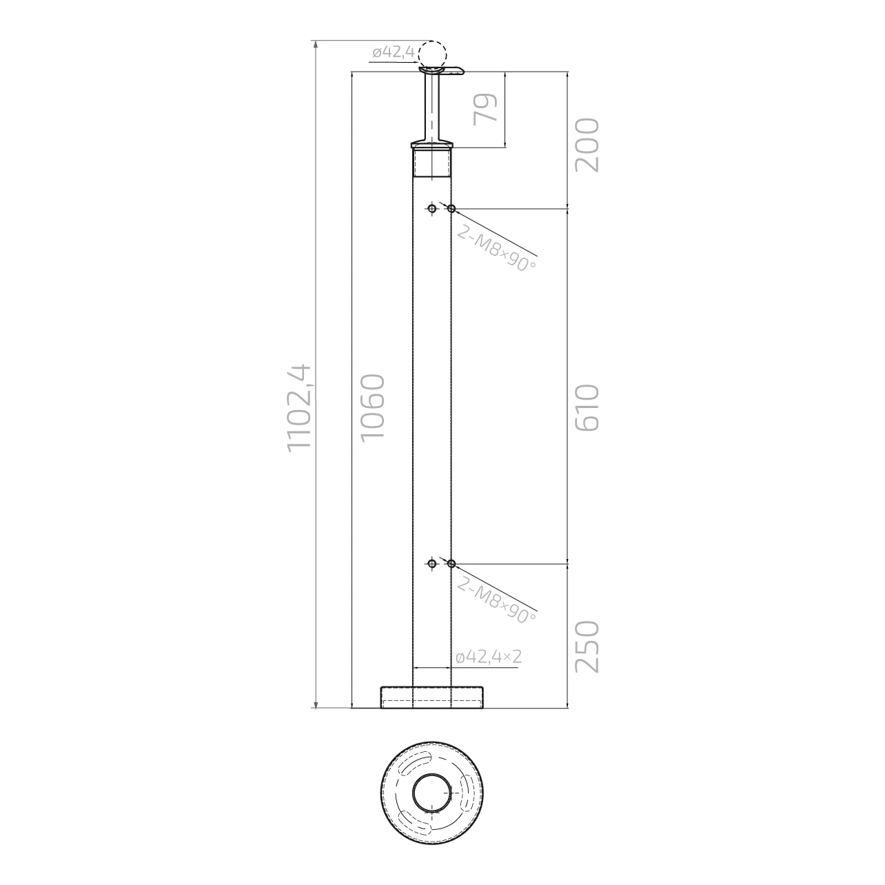 - Priemer rúrky: ø42,4 mm, hrúbka steny: 2 mm