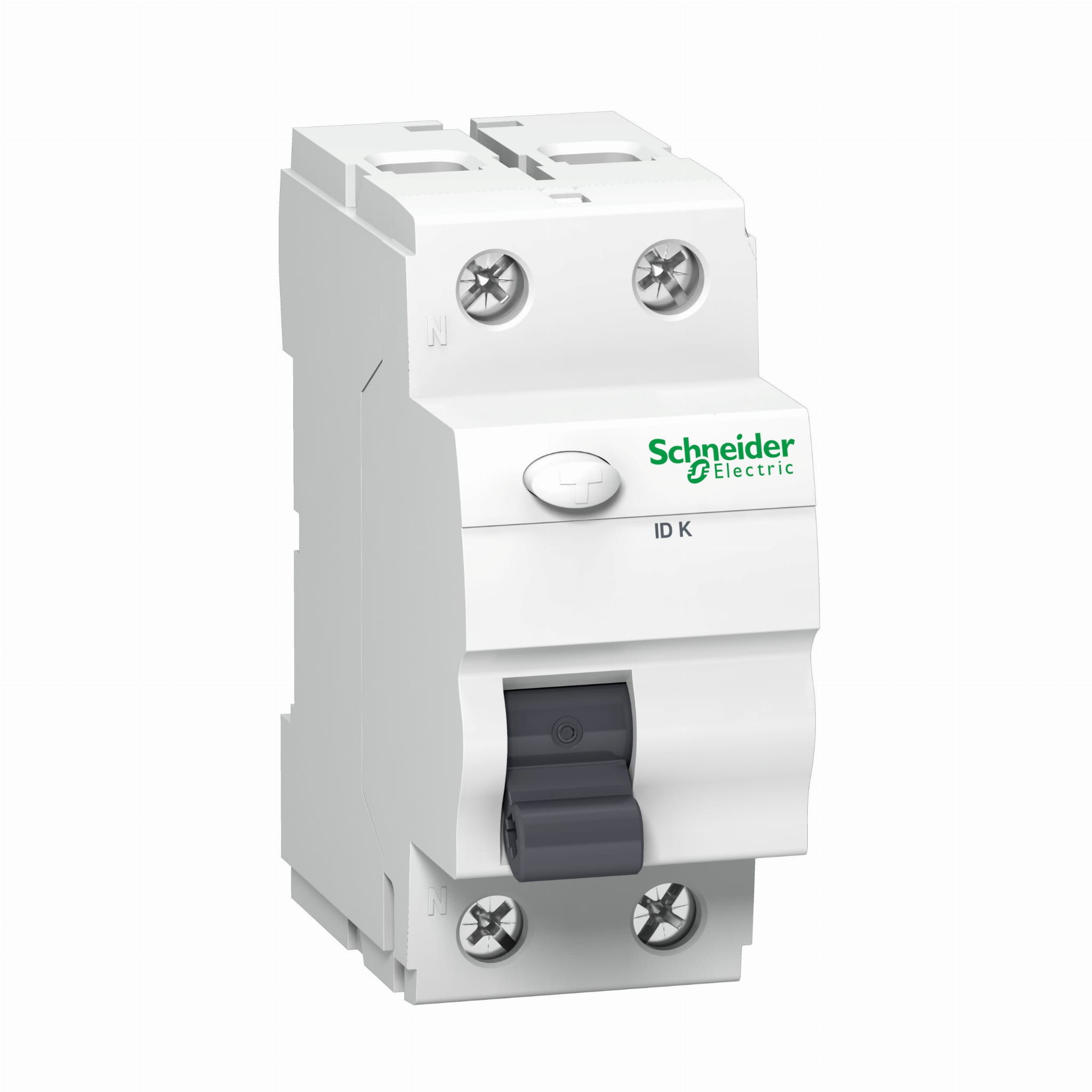 Je vybavený dvojitými lisovanými svorkami na spodnej strane (koľajnica + kábel), ktoré zaručujú bezpečné pripojenie. Koľajnica N je umiestnená na ľavej strane pre jednoduché šablónovanie s nadprúdovými ističmi. Jednotka má aj testovacie tlačidlo "T" na kontrolu správnej prevádzky.